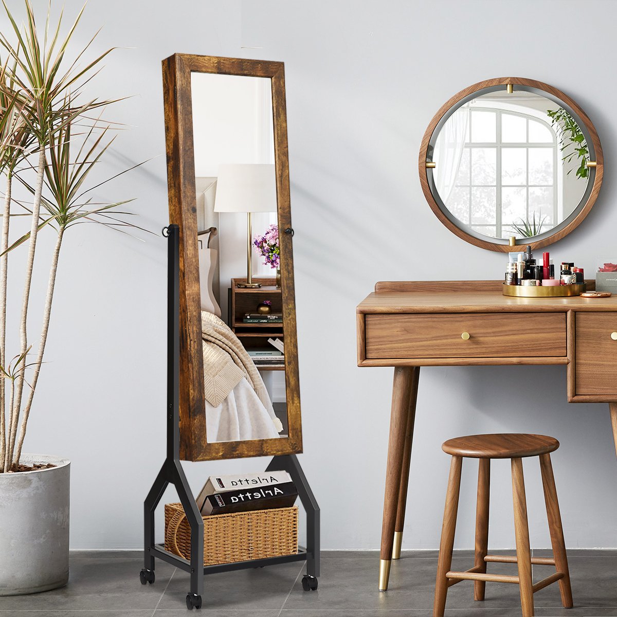 • Daugiafunkcis 2-in-1 dizainas: sujungia papuošalų laikymo spintelę ir pilno ilgio veidrodį.