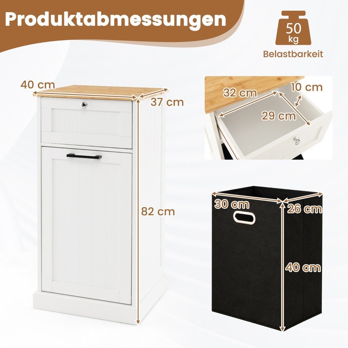 Pastatoma skalbinių spintelė su išskleidžiamu krepšiu ir stalčiumi (Balta)