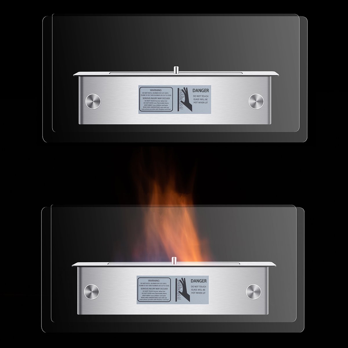 - Elegantiškas dizainas su dviem grūdinto stiklo plokštėmis, atveriančiomis puikų liepsnų vaizdą.