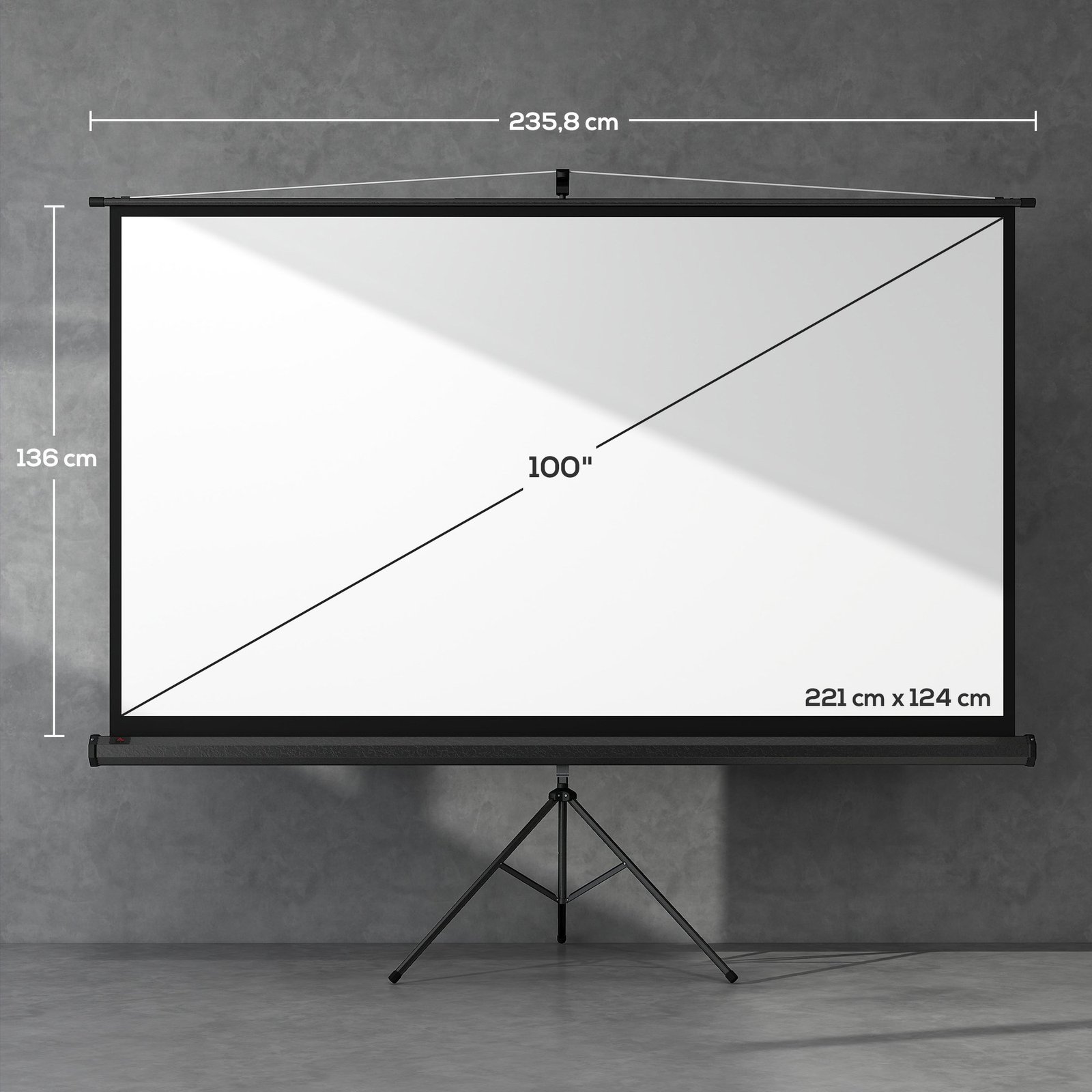 Pastatomas ištraukiamas projektoriaus ekranas 100 colių