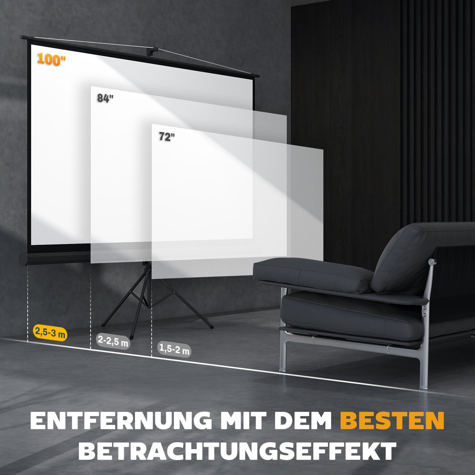 ✔ Praktiškas projektoriaus ekranas, puikiai tinkantis namų kinui ar verslo pristatymams
