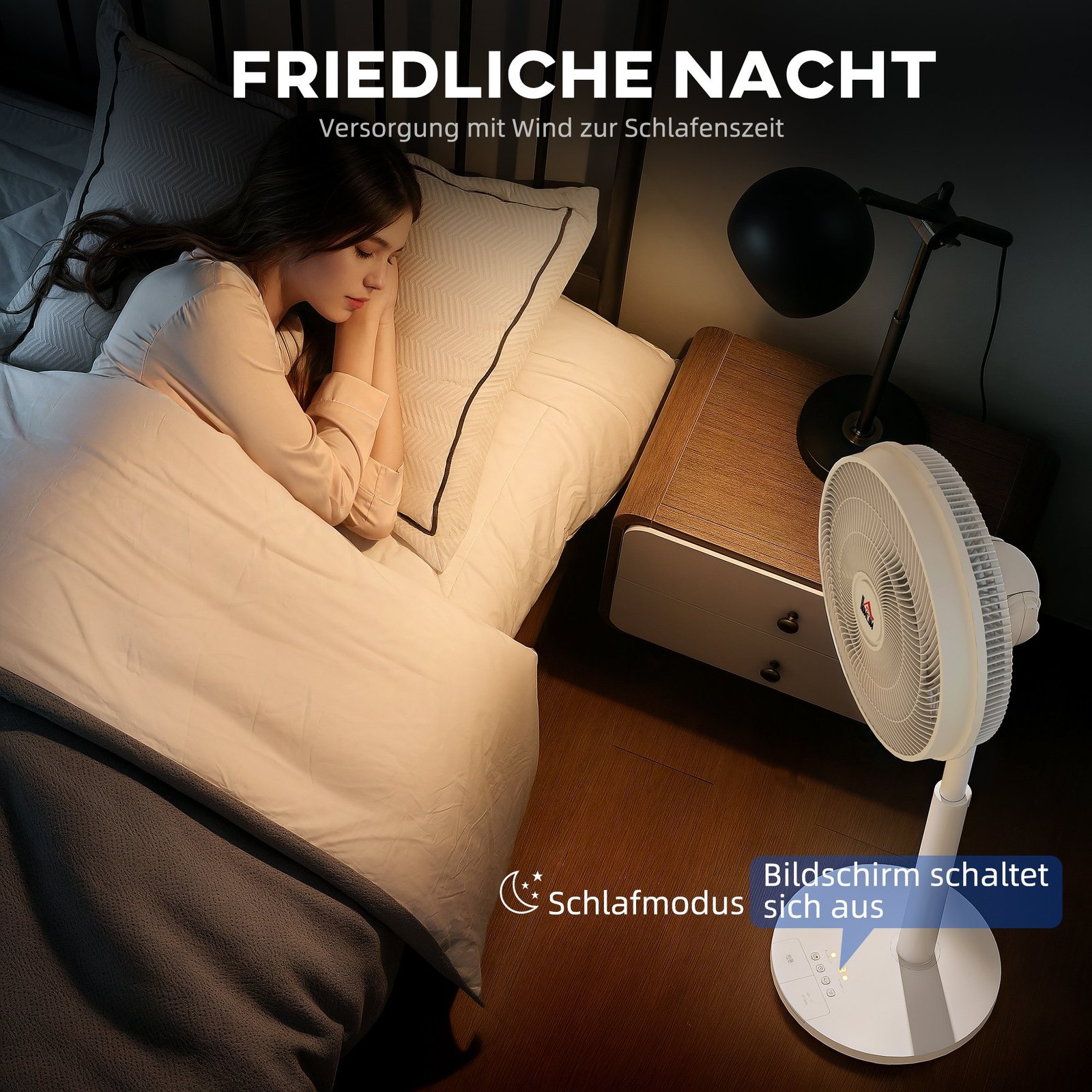 Mėgaukitės ramia atmosfera su šiuo pastatomu ventiliatoriumi, kuris dėl nuolatinės srovės variklio užtikrina energiją taupantį, vos girdimą oro srautą. Trys pasirenkami režimai, įskaitant miego režimą, ir 12 lengvai nuotolinio valdymo pulteliu reguliuojamų greičių suteikia idealų oro srautą bet kuriuo metu. Pasukama funkcija ir reguliuojama ventiliatoriaus pakreipimo galvutė leidžia efektyviai vėsinti visus kambario kampus.