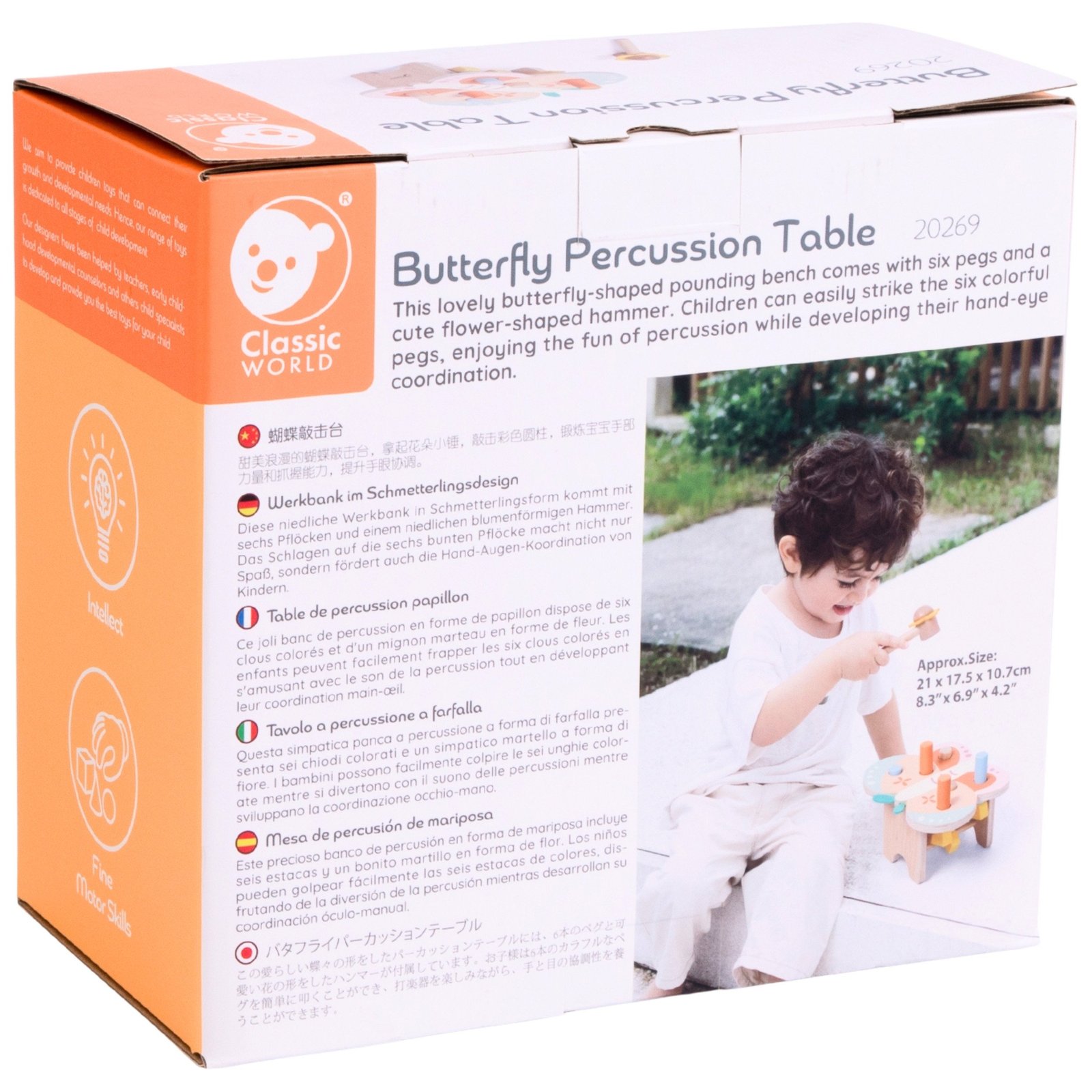 Medinis drugelio formos staliukas – puikus pasirinkimas mažyliams, mėgstantiems stuksenti ir atrasti įvairius garsus! Šis spalvingas ir įtraukiantis žaislas skatina motorinių įgūdžių ir akių-rankų koordinacijos ugdymą. Rinkinyje esantis žaismingas gėlės formos plaktukas suteikia žaislui papildomo žavesio ir kviečia vaikus aktyviai leisti laiką.