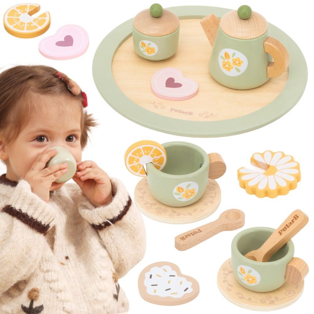 Kviečiame mažuosius draugus į popietės arbatos šventę su šiuo mediniu arbatos servizu, kuris išsiskiria skandinavišku dizainu ir kruopščiai apgalvotomis detalėmis. Šis 15 dalių rinkinys leis vaikui įsijausti į puikaus šeimininko vaidmenį, patiekiant gėrimus ir sausainius ant elegantiško apvalaus padėklo. Pastelinės spalvos su citrinų motyvu bei lygūs, saugūs kraštai paverčia šį servizą ne tik miela kambario puošmena, bet ir saugiu žaislu, skatinančiu vaizduotę. Su tikroviškais aksesuarais mažylis žaidimo metu mokosi gerų manierų, socialinių vaidmenų ir gebėjimo dalintis su kitais. Šis servizas – puikus pasirinkimas ikimokyklinukui, nes džiugioje ir kūrybingoje aplinkoje jis derina klasikinį „namų“ žaidimą su smulkiosios motorikos lavinimu.