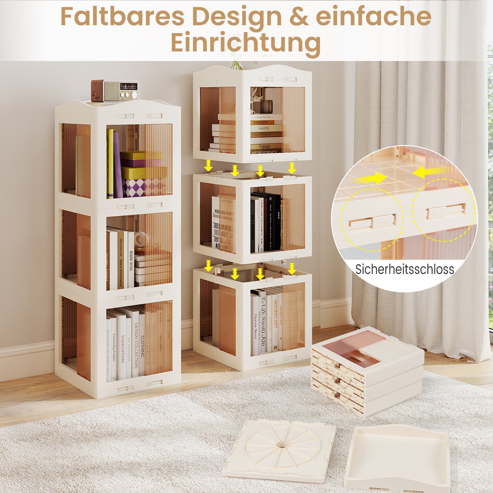 Ši besisukanti knygų lentyna sukurta maksimaliam erdvės išnaudojimui ir lengvai prieigai prie mėgstamų knygų bei dekoratyvinių daiktų. Su 360° besisukančiu pagrindu, ši lentyna leidžia sklandžiai pasukti ir patogiai pasiekti joje laikomus daiktus iš bet kurio kampo. Sulankstoma konstrukcija suteikia universalumo ir palengvina laikymą, kai to reikia. Skaidrios lentynos harmoningai įsilieja į jūsų erdvę.