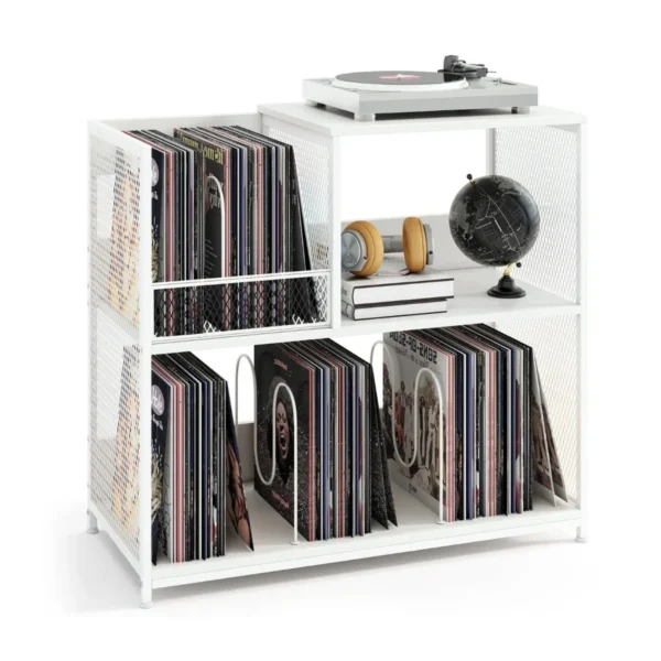 Patefono stovas su išimamomis pertvaromis talpinantis iki 300 albumų (Balta)