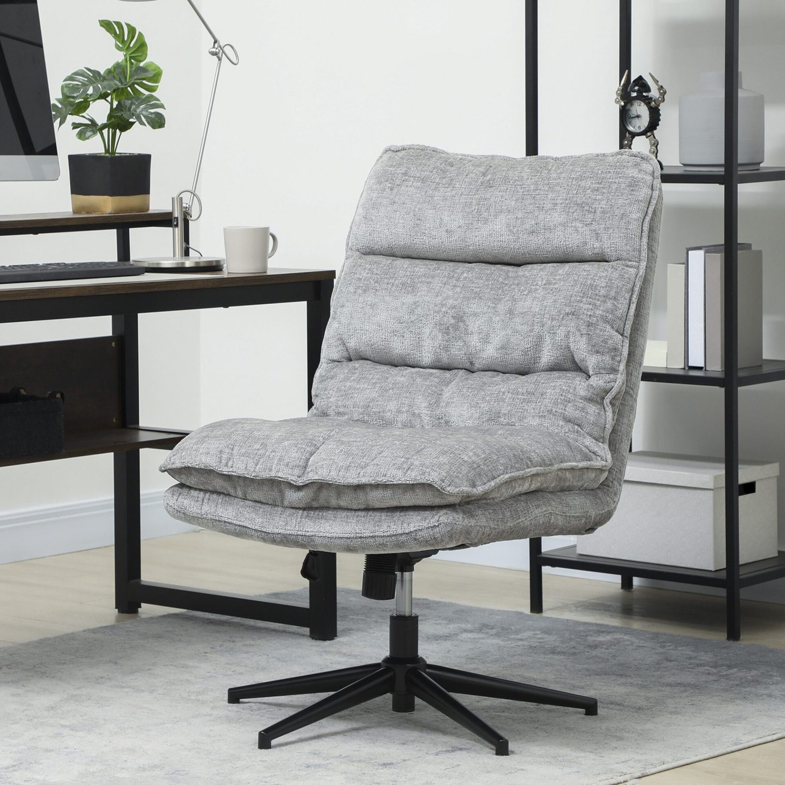 Pasinerkite į prabangų patogumą biuro kėdės, aptrauktos minkštu, orui pralaidžiu audiniu ir su dvigubu putų sluoksniu bei dirbtinės medvilnės pagalvėlėmis – idealu ilgalaikiam sėdėjimo komfortui. Dėl pakreipimo funkcijos galite lengvai siūbuoti, o 360° pasukimas užtikrina sklandų judėjimą. Kompaktiškas, berankovis dizainas sklandžiai integruojasi į jūsų biurą ar namų biurą.