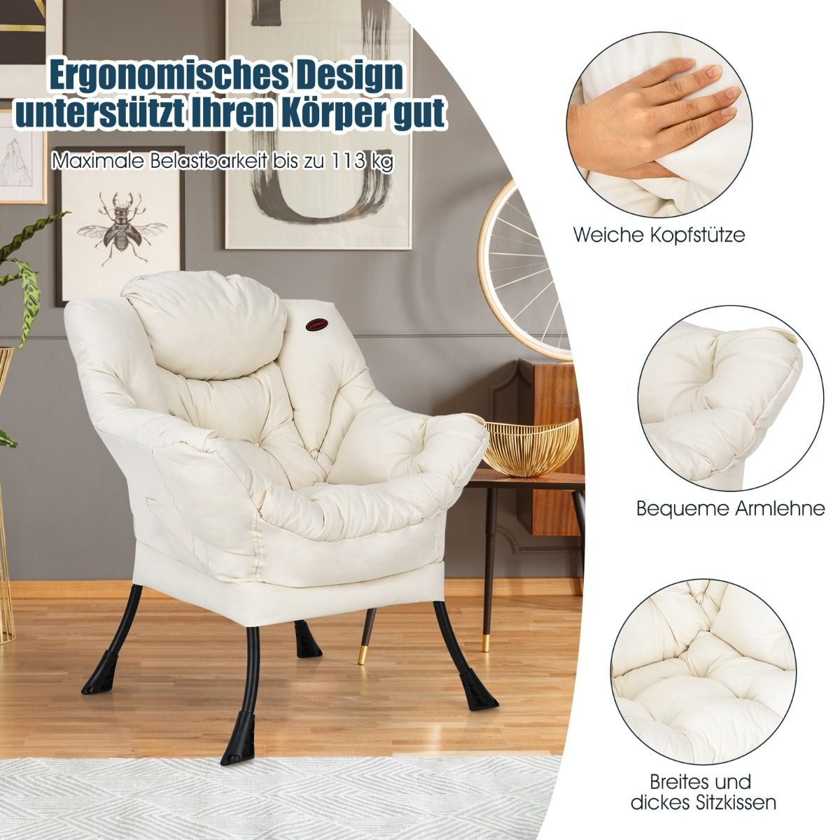Patogus fotelis su porankiais ir šonine kišene (Smėlio)