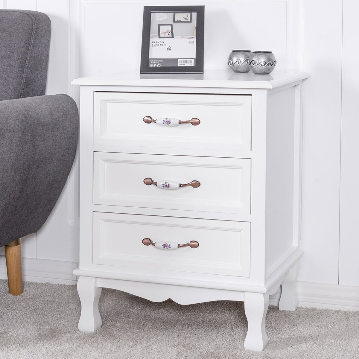 - Erdvi talpa: trys stalčiai ir viršutinis paviršius suteikia pakankamai vietos jūsų daiktams.