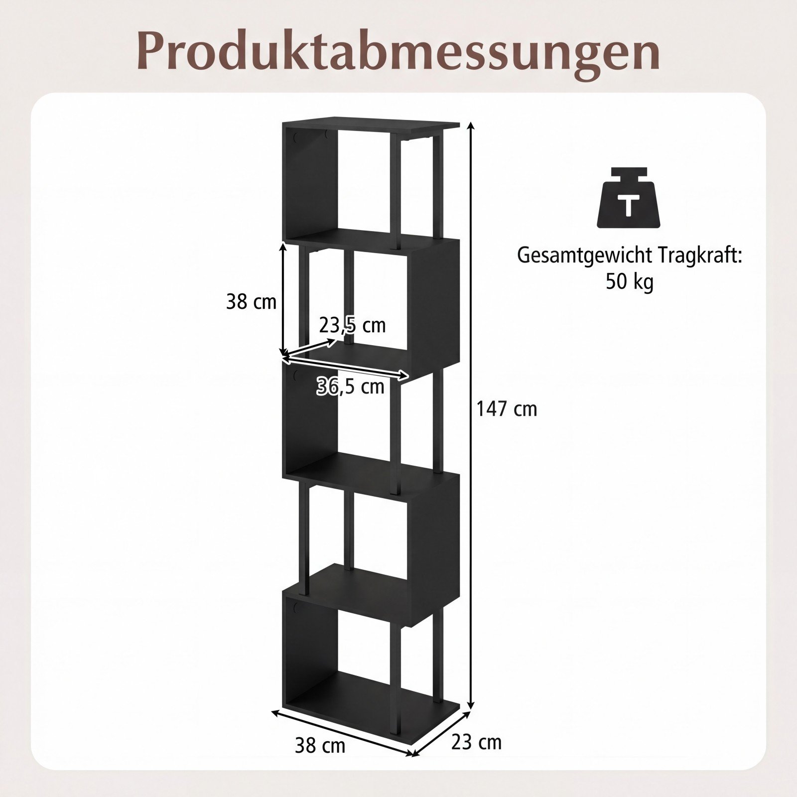 - Kiekvienos lentynos matmenys (I x P x A): 36,5 x 23,5 x 38 cm