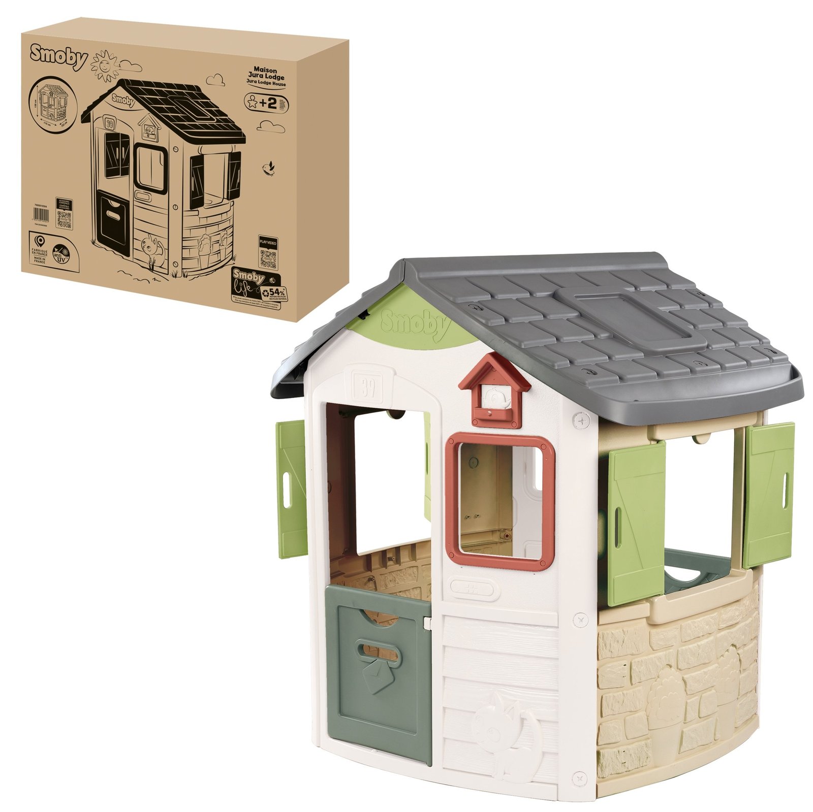 „Smoby Neo Jura“ žaidimų namelis – puiki erdvė vaikų nuotykiams. Jis gali tapti smagia žaidimų vieta, saugia slėptuve ar erdve vaizduotei lavinti. Mažieji galės atidarinėti ir uždarinėti langines, kviesti draugus žaisti kartu bei siųsti laiškus pro angą durelėse. Fasade esantis paukščių namelis suteikia nameliui papildomo žavesio.