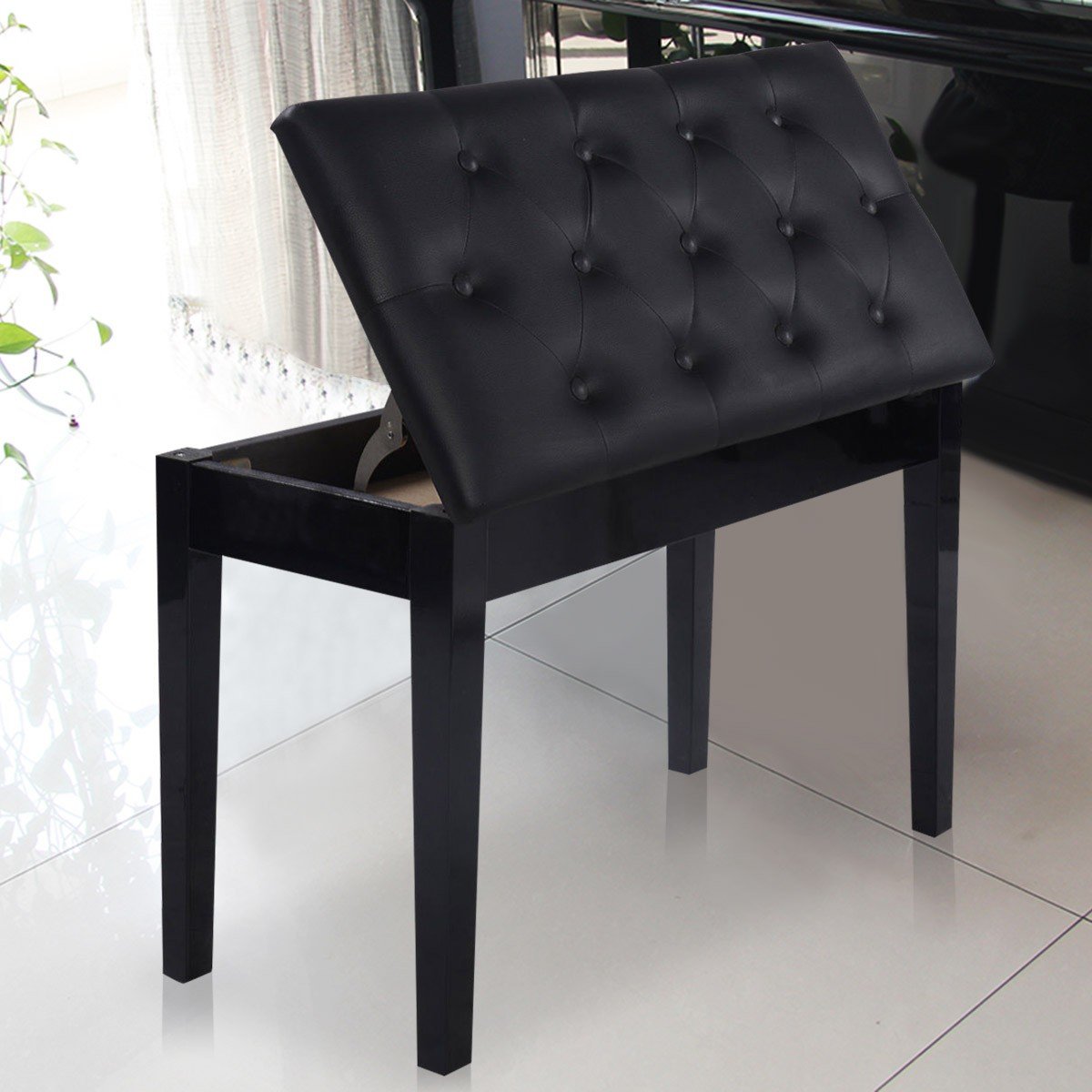 Pianino suoliukas su daiktadėže (Juoda)