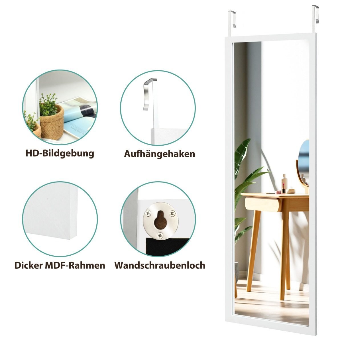 Pilno kūno veidrodis su pakabinimo kabliukais (Balta)