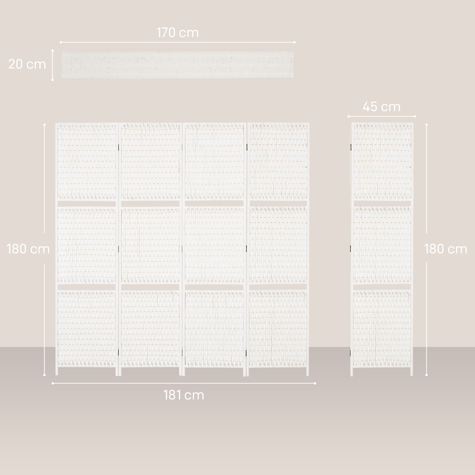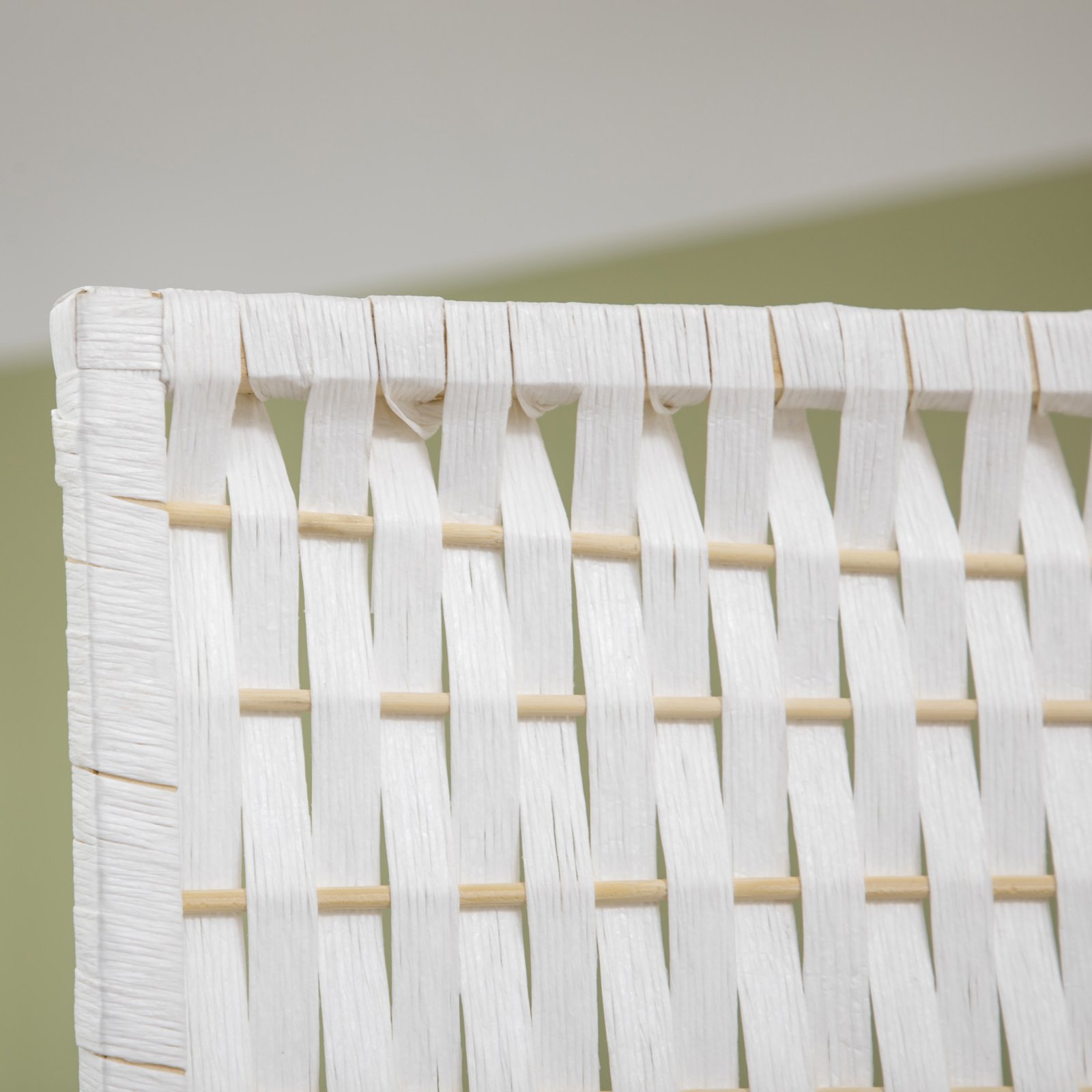 Suteikite žavesio savo namams su šiuo nuostabiu 4 dalių kambario pertvaru, pagamintu iš pušies medienos, bambuko ir pintų popieriaus pluoštų, šiaudų baltumo apdaila. Jo pintas dizainas suteikia harmoningą ir unikalų stilių, kuris papuoš bet kurį kambarį.