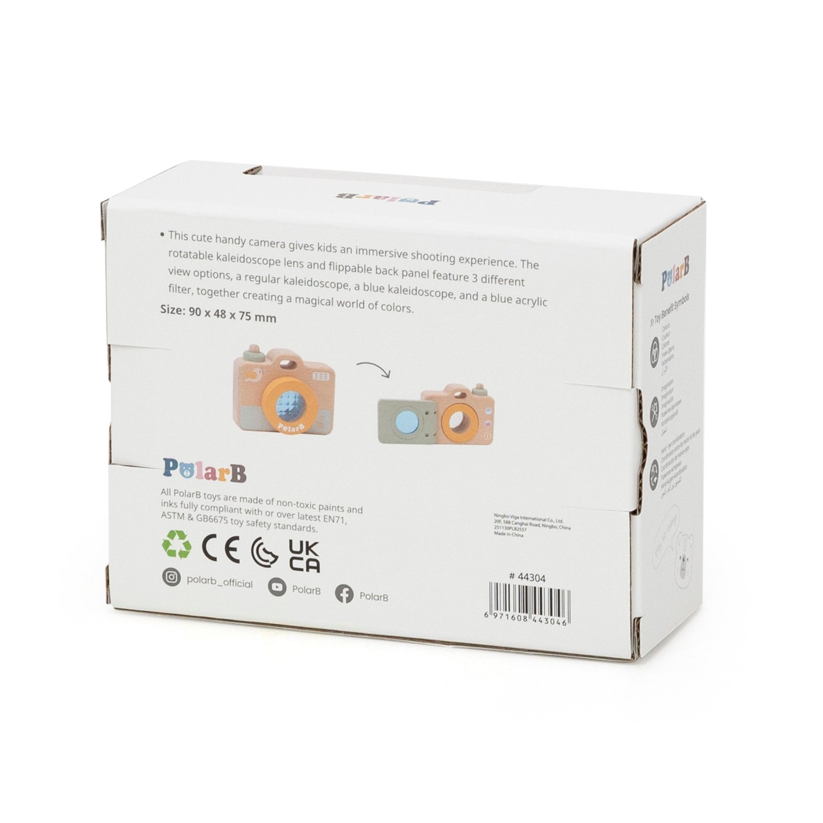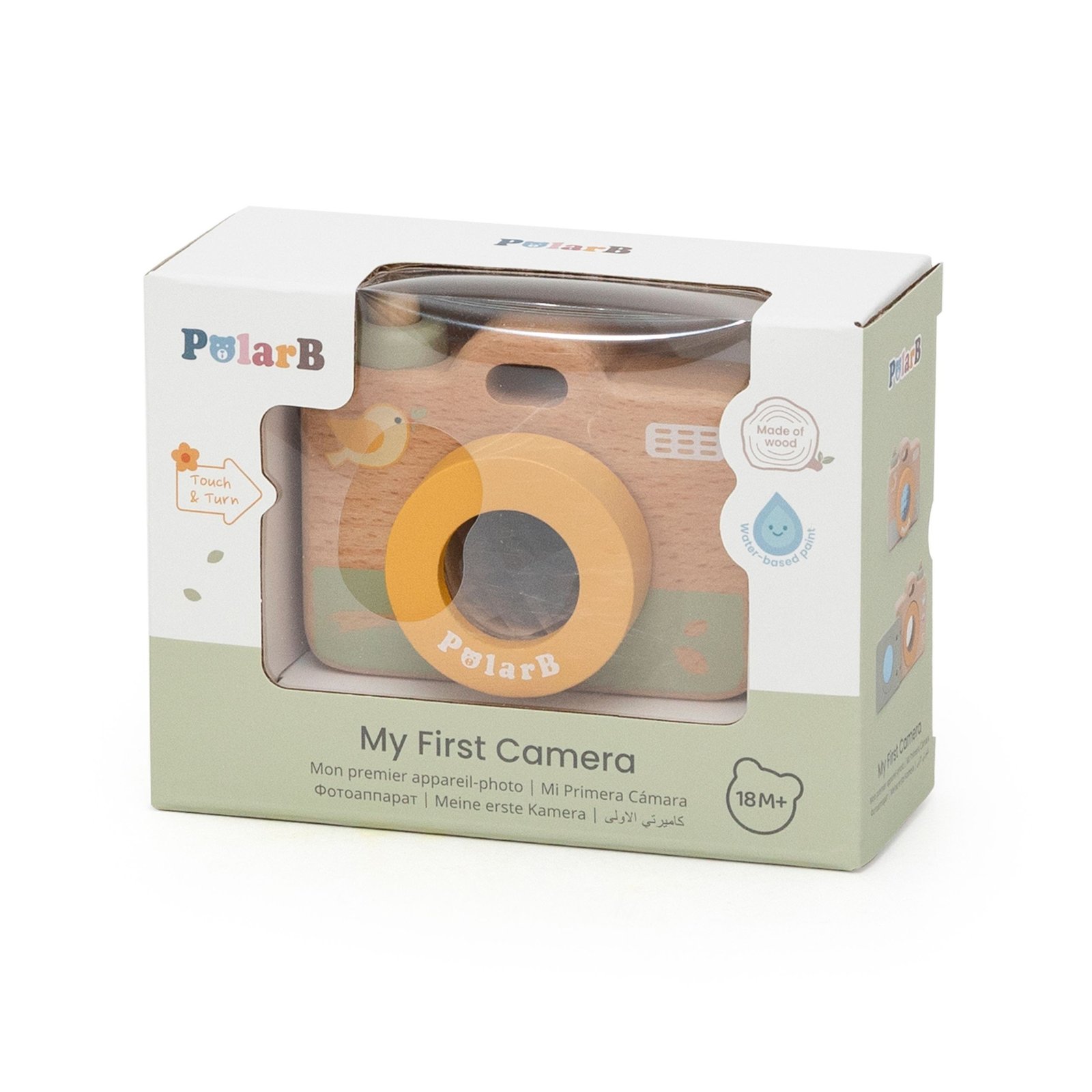 Medinis žaislinis fotoaparatas „Mano pirmasis fotoaparatas“ – lavinamasis žaislas, skirtas vaikams nuo 18 mėnesių. Besisukantis kaleidoskopinis objektyvas padeda mažyliams atrasti įvairias spalvas ir formas, lavindamas jų vaizduotę ir pojūčius. Natūrali buko mediena, švelnios pastelinės spalvos ir saugūs, suapvalinti kraštai užtikrina patogų ir saugų žaidimą. Atidaromas galinis skydelis suteikia papildomo interaktyvumo ir paįvairina žaidimą.