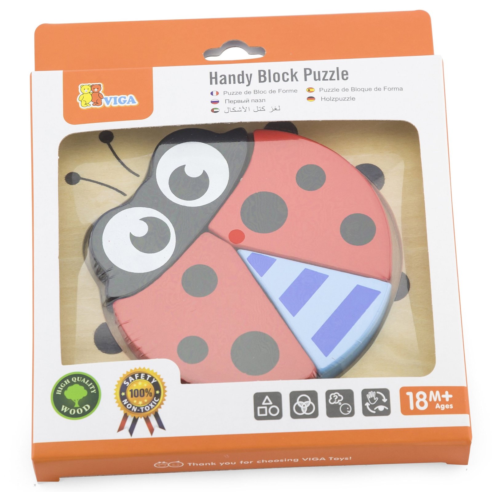 Viga medinė mini dėlionė puikiai tinka vaikams tiek namuose, tiek darželyje. Dėlionę sudaro 4 elementai, iš kurių sudėliojama boružėlė. Mediniame pagrinde išpjautos įdubos atitinka spalvotų dėlionės detalių formas.