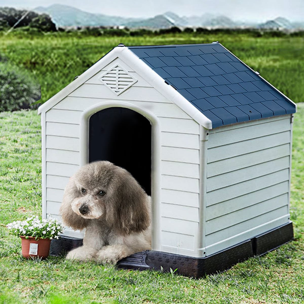 Sukurta apgalvojant jūsų augintinio poreikius, ši namelyje įrengta šunų būda suteiks jam erdvės žaisti, ilsėtis, mėgautis saulės spinduliais ir lauko malonumais. Pagaminta iš tvirto PP plastiko, ji garantuoja ilgaamžiškumą ir stabilumą.
