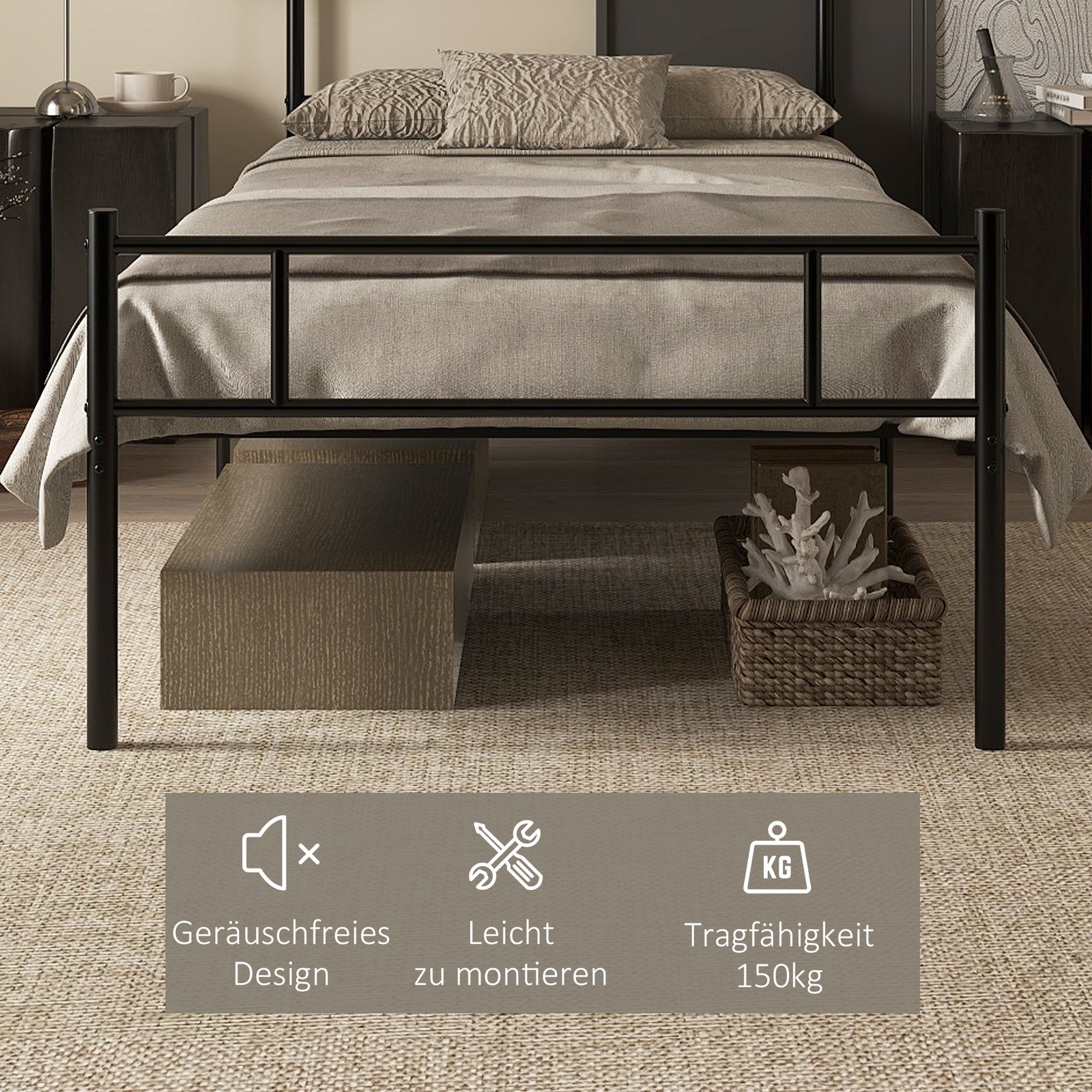 Suteikite savo miegamajam elegancijos su šia viengule lova. Matinis juodas plieninis rėmas tinka bet kokiam stiliui. Tvirtas rėmas ir stabilios lovos rėmo kojos užtikrina patikimą atramą ir ramias naktis. Integruotos grotelės ir aukštas galvūgalis idealiai palaiko čiužinį. Praktiška: erdvi erdvė po lova suteikia vietos daugeliui daiktų.