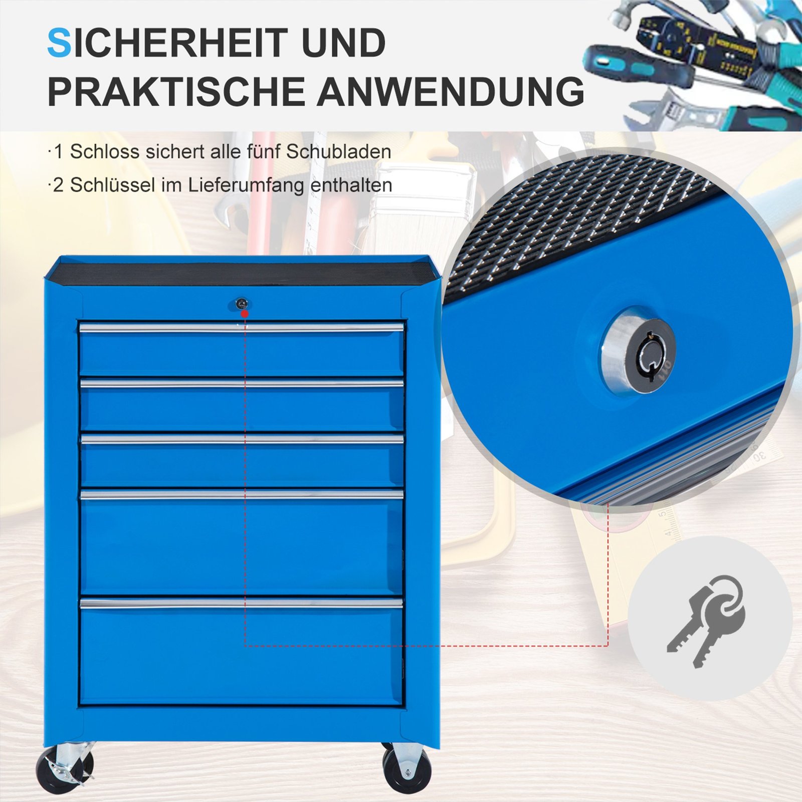 ✔ Idealiai tinka saugiai laikyti įrankius ir įrangą garaže ar dirbtuvėse