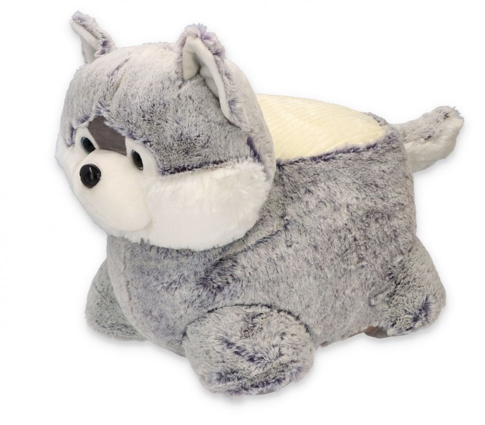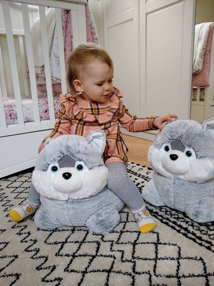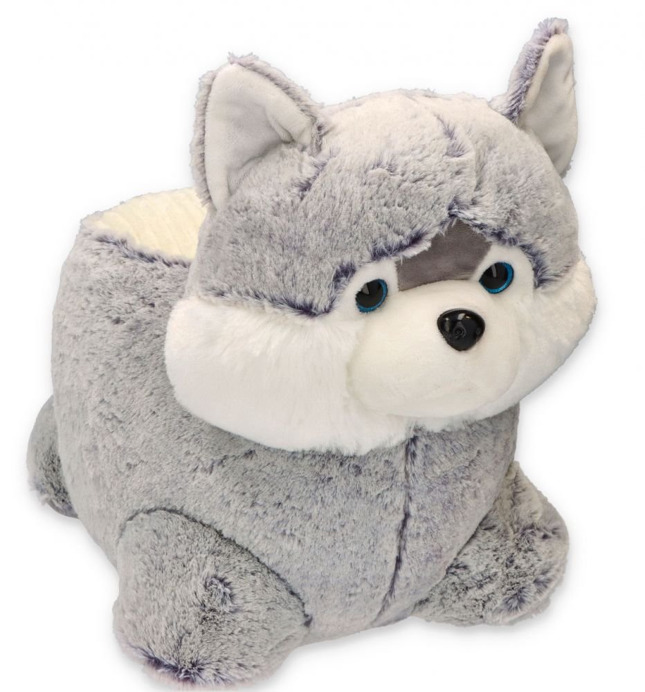 Pliušinis haskio šuniuko pufas