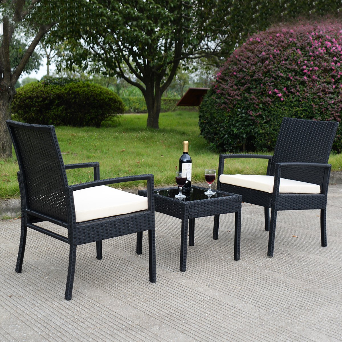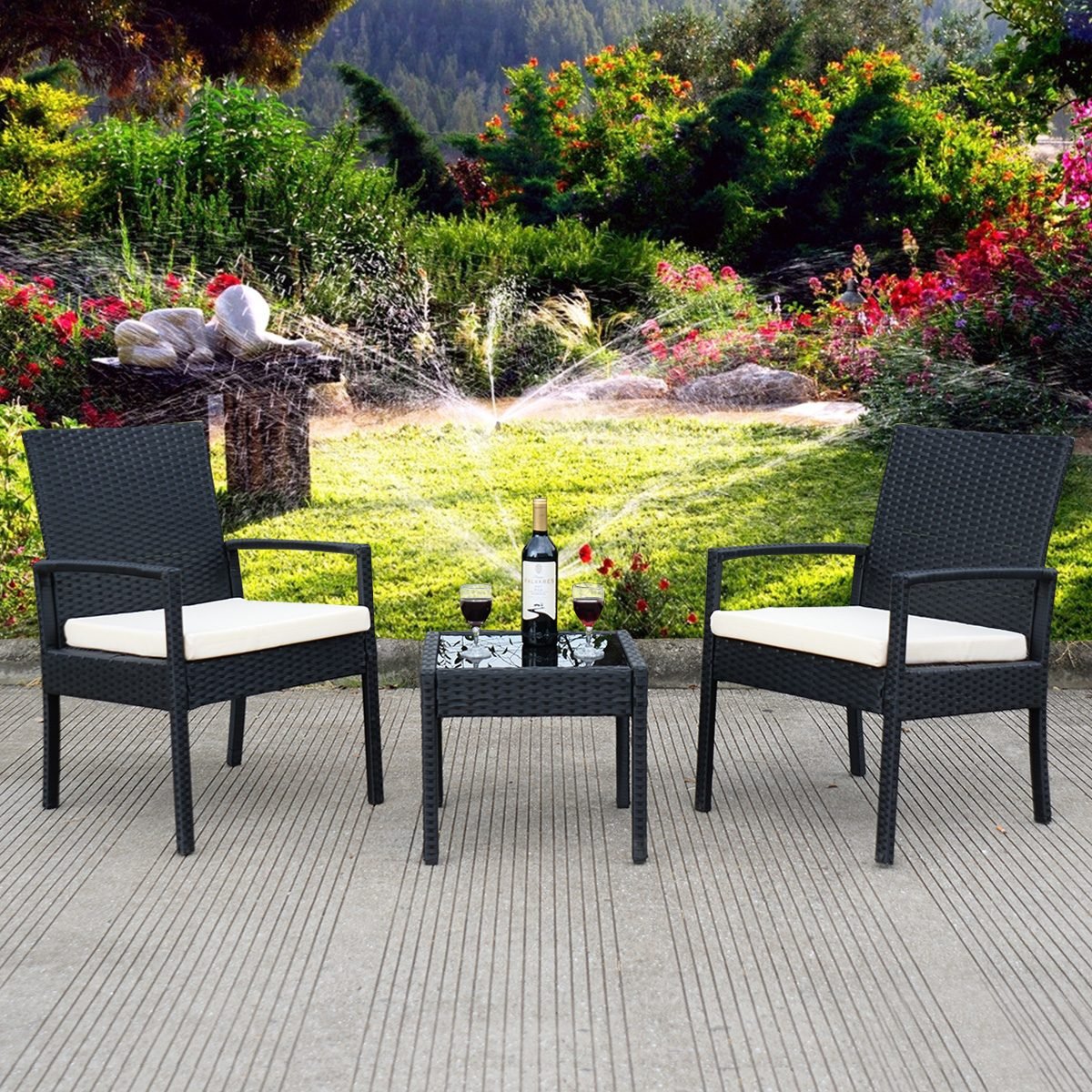 Poliratano lauko baldų komplektas su stikliniu staliuku (Juoda)