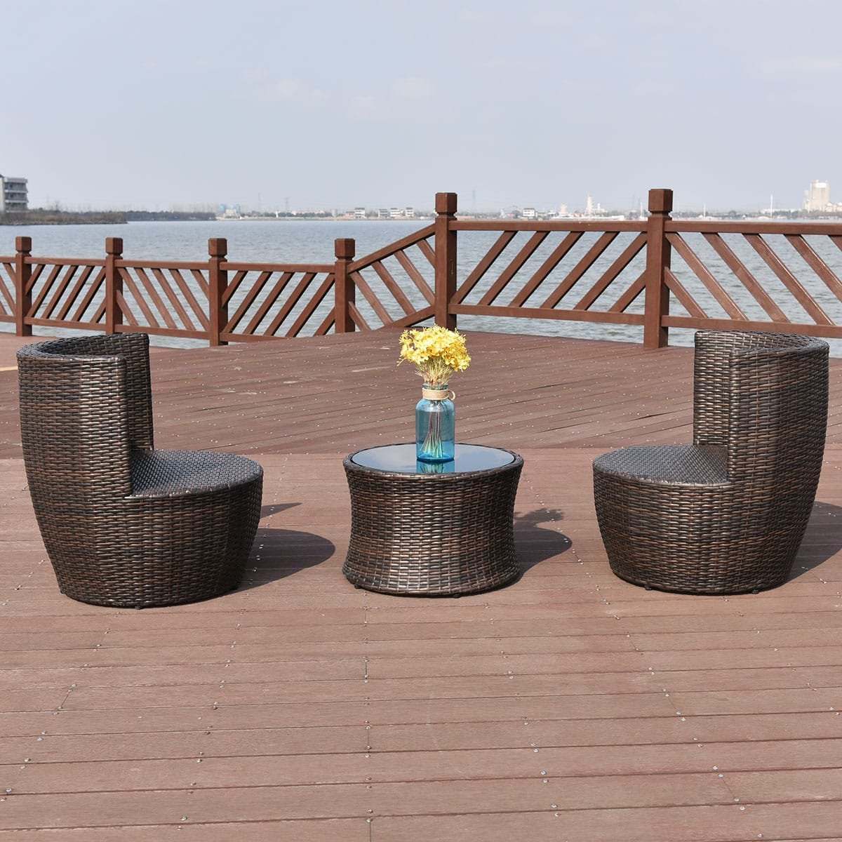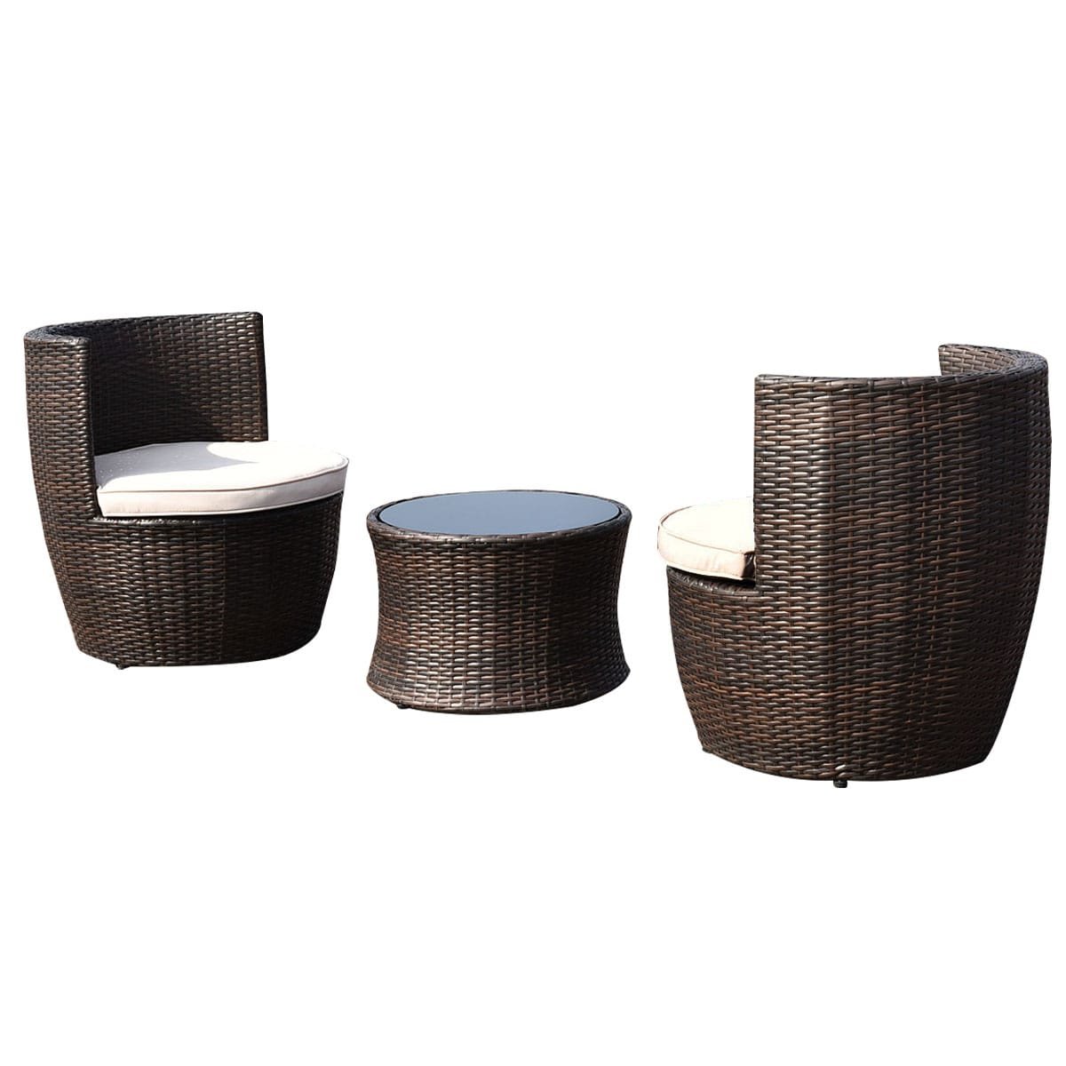 • Komplektą sudaro du patogūs krėslai ir staliukas su grūdinto stiklo stalviršiu.