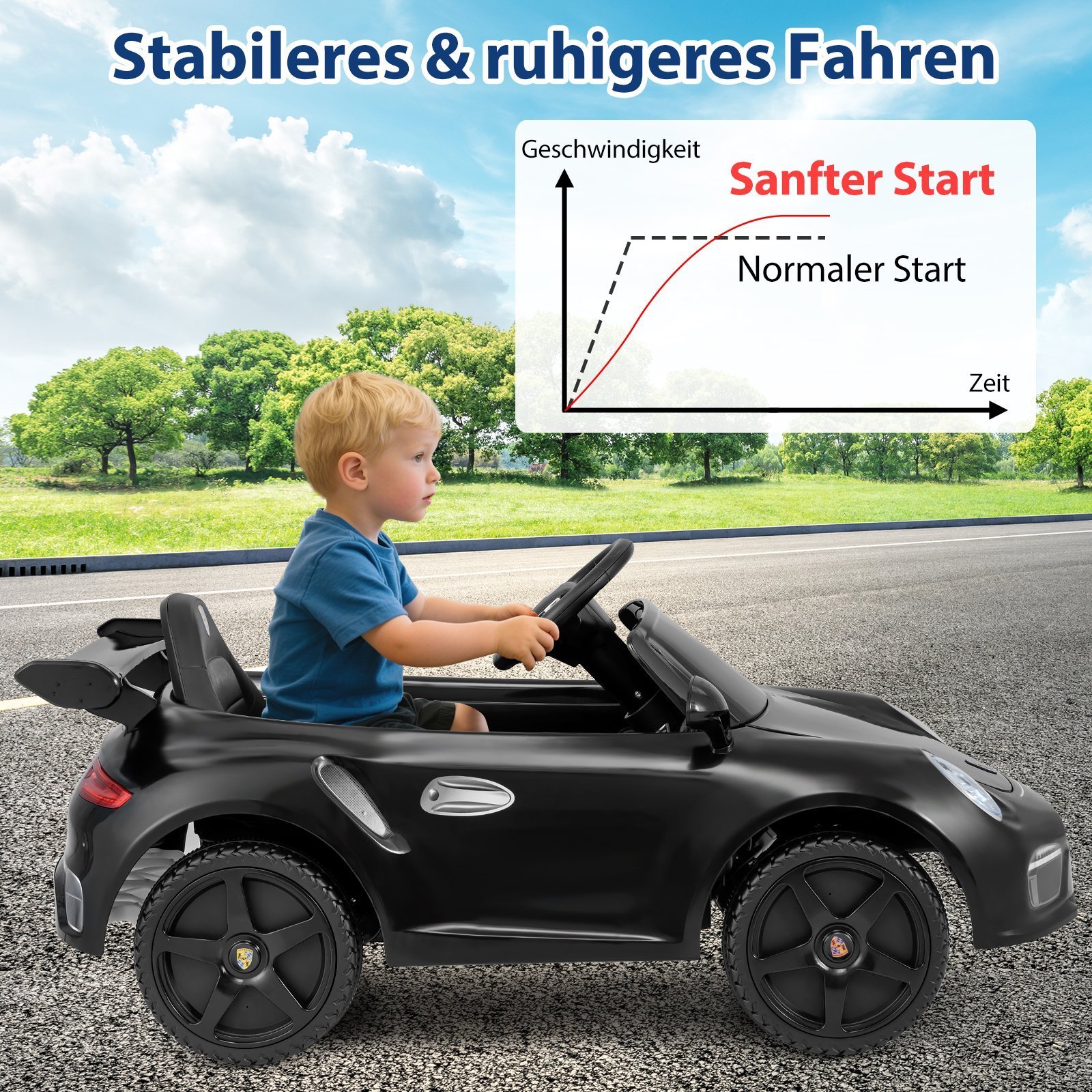 Porsche elektromobilis vaikams su nuotoliniu valdymu (Juoda)