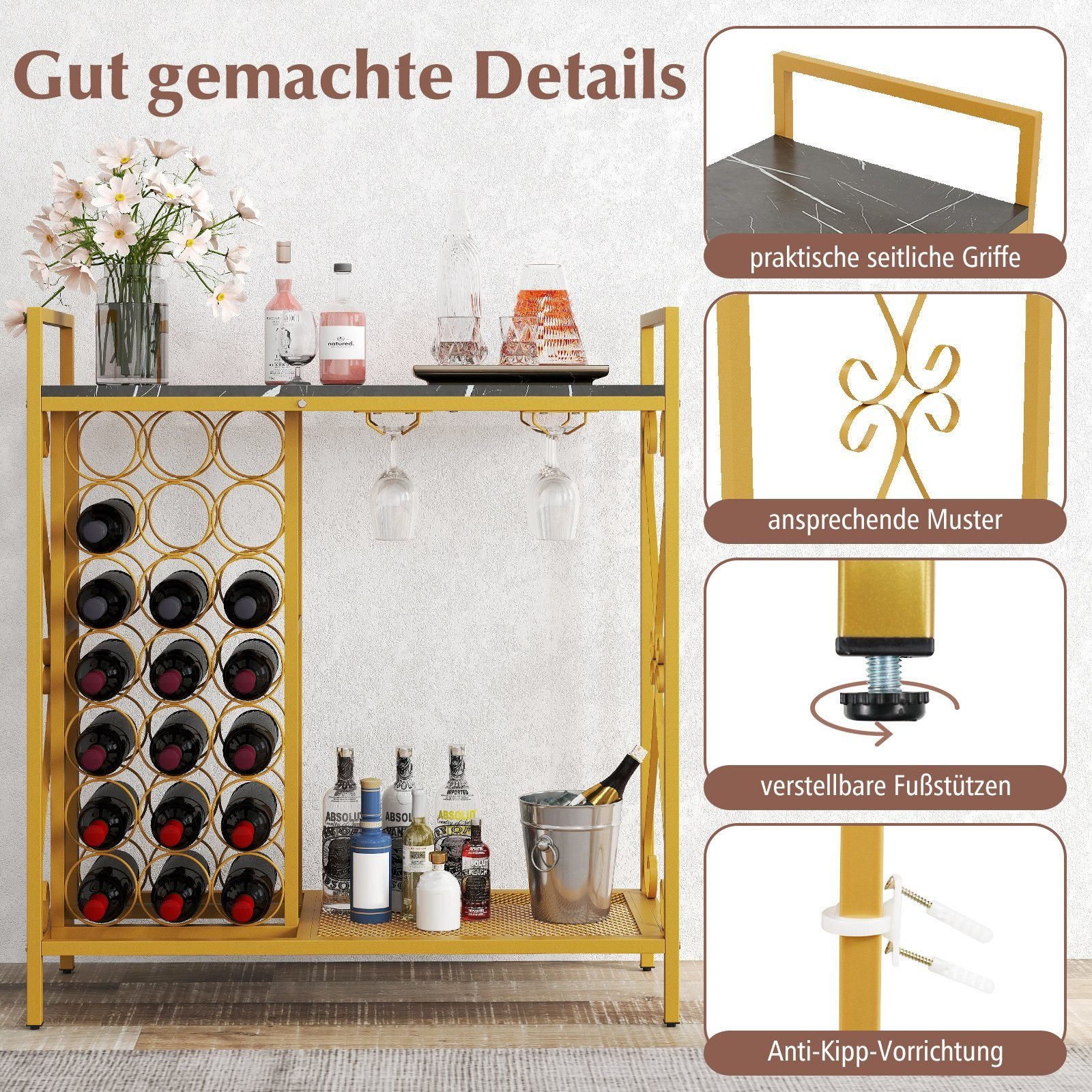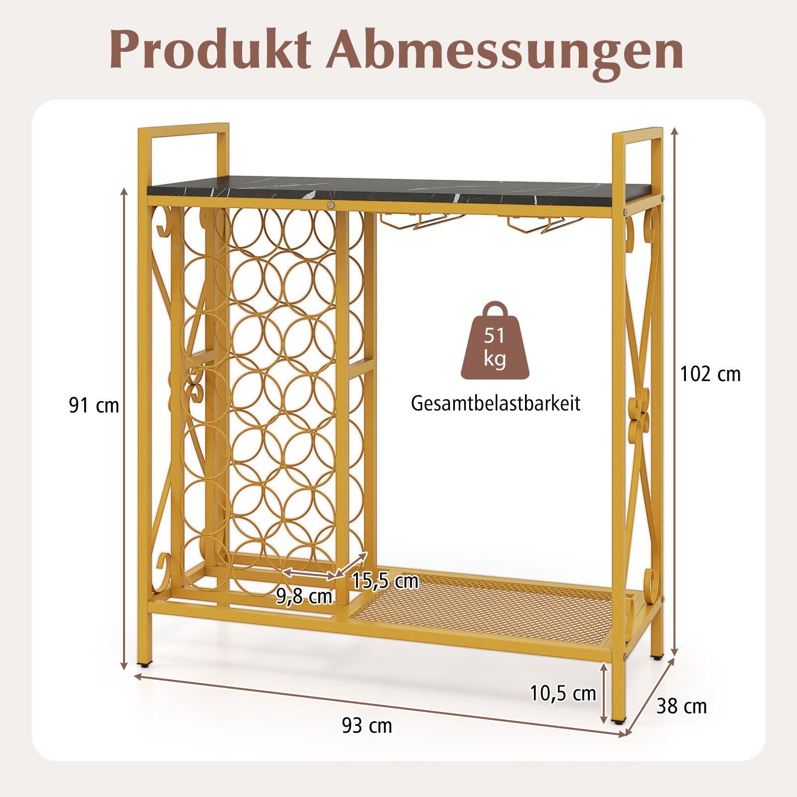 Praktinis vyno stovas su laikikliu ir stalviršiu (Auksinė)
