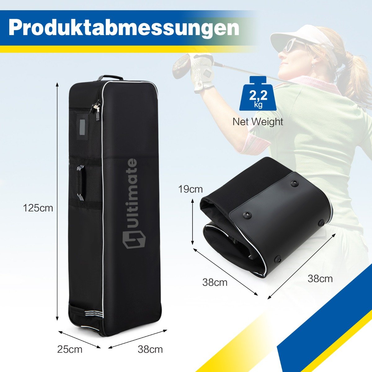 Šis krepšys – puikus sprendimas keliaujant su Jūsų brangiaisiais golfo įrankiais! Su 2 sklandžiai riedančiais ratukais ir 3 integruotomis rankenomis, jis tampa praktišku ir patogiu pagalbininku, atitinkančiu visus Jūsų golfo įrangos transportavimo poreikius.