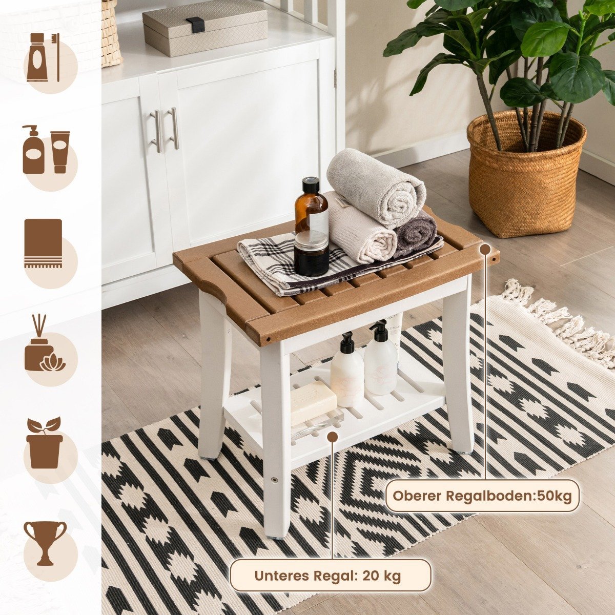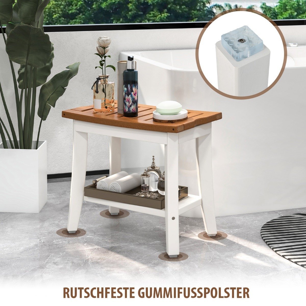 Praktiškas dušo suoliukas su lentyna (Balta)