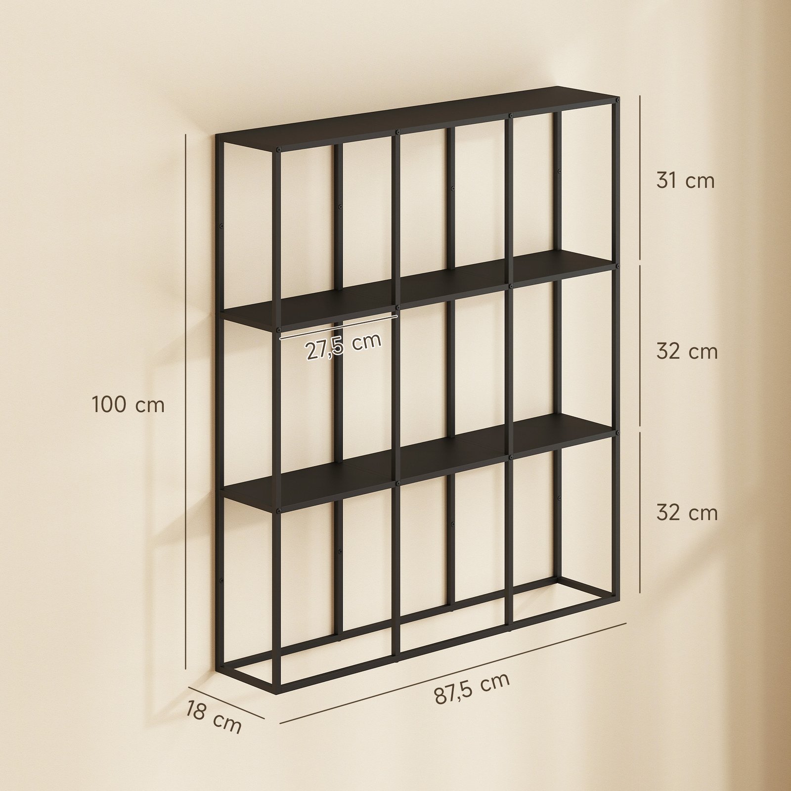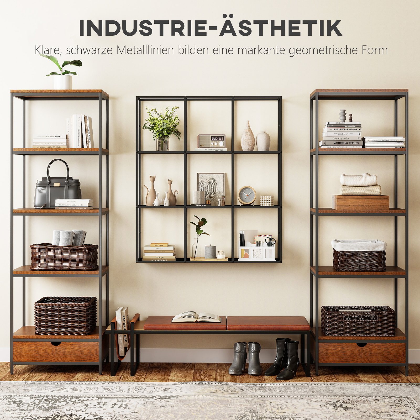 Pramoninio stiliaus sieninė lentyna su 9 skyriais