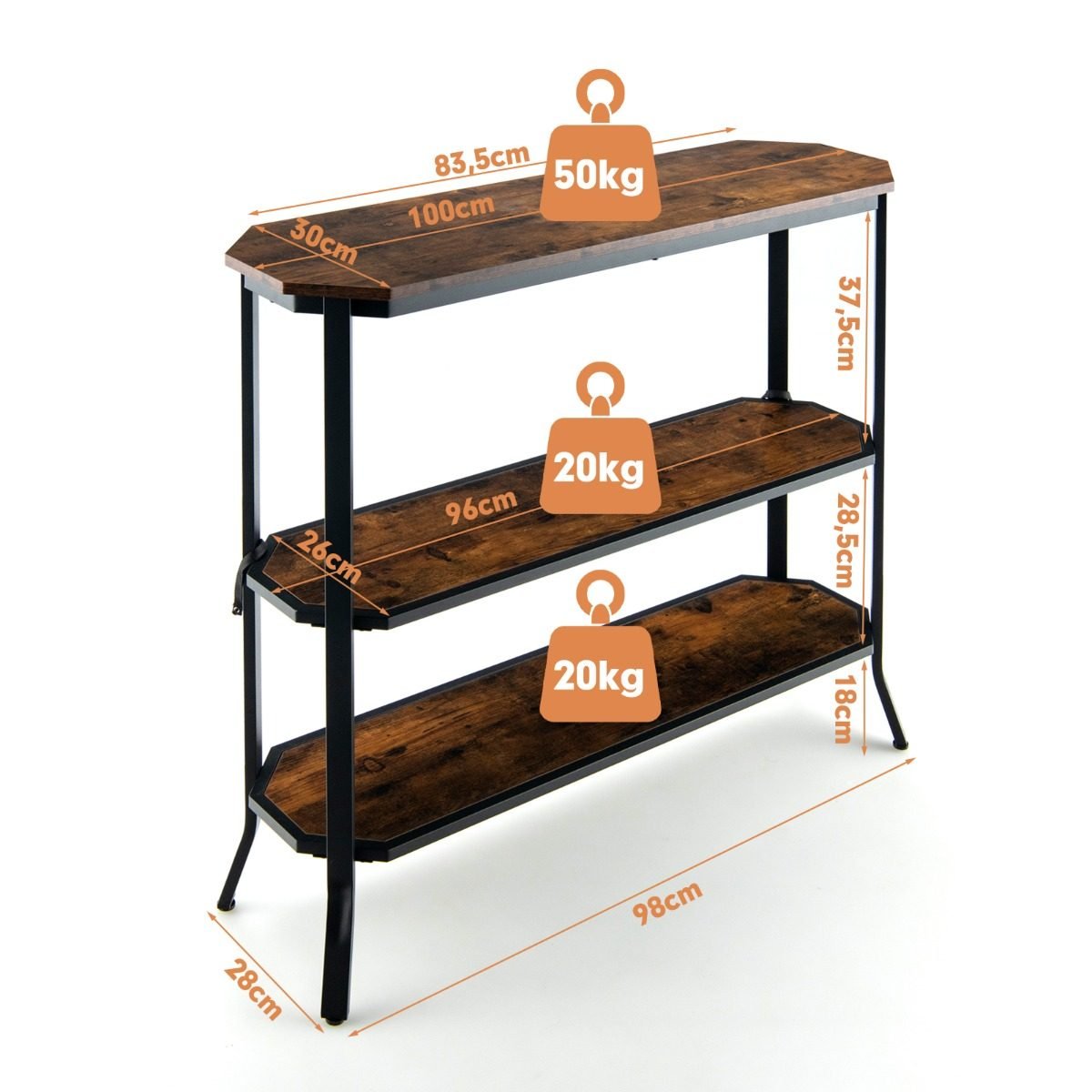 Pramoninis 3 pakopų konsolinis staliukas su atviromis lentynomis (Ruda)