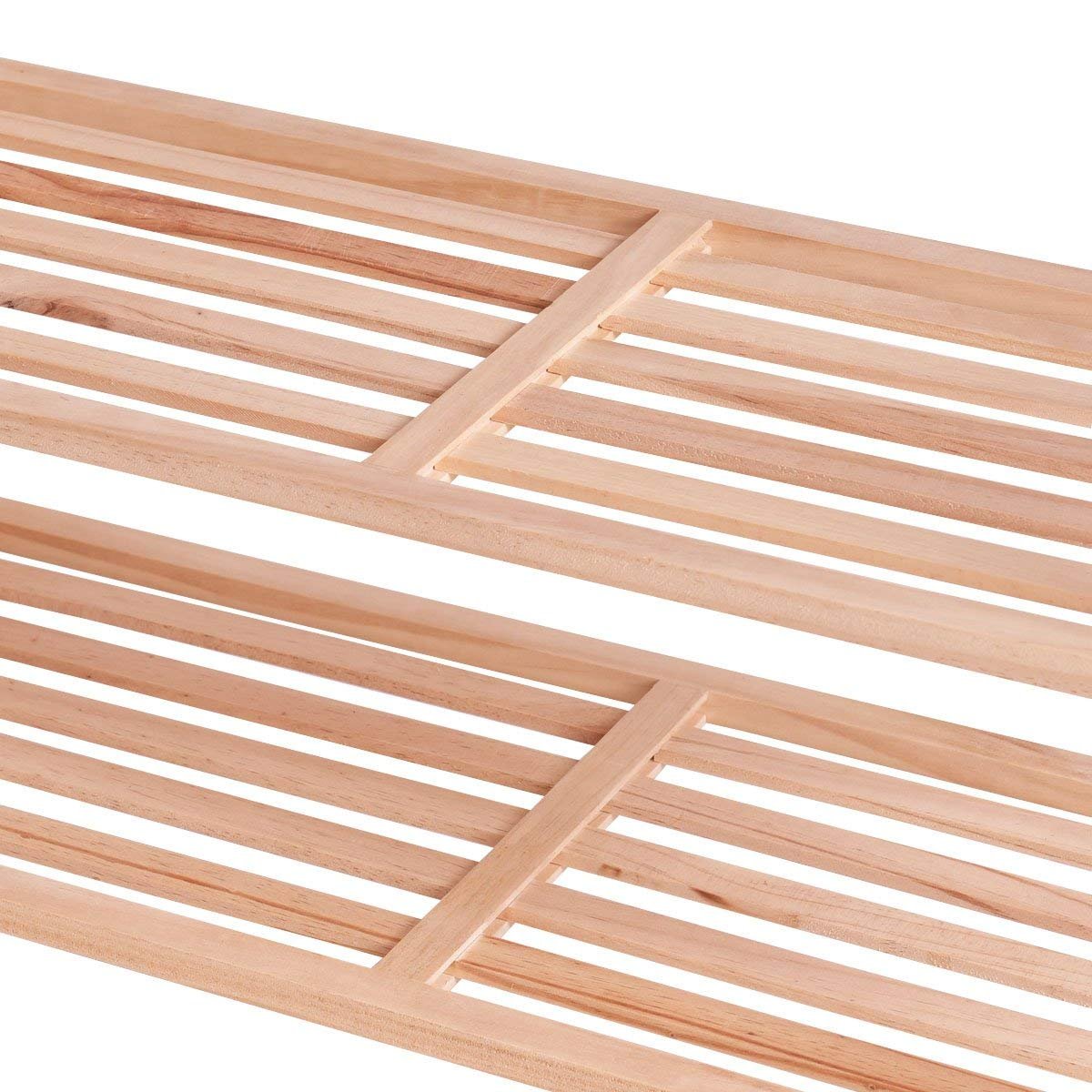 Ši medinė batų lentyna idealiai tinka mažiems koridoriams, padeda sutvarkyti avalynę ir efektyviai taupo vietą. Pagaminta iš tvirtos pušies medienos, užtikrinančios patvarumą ir ilgaamžiškumą. Dviejose pakopose galima sutalpinti iki 8 porų batų, o dėl išplečiamo dizaino lentyną galėsite pritaikyti pagal savo poreikius.
