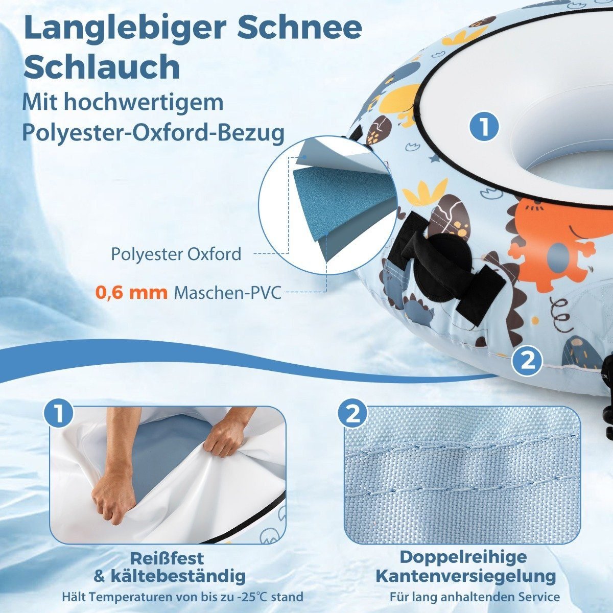 Mėgaukitės žiemos pramogomis su visa šeima! Šios didelės ir gilios pripučiamos rogės puikiai tinka tiek vaikams, tiek suaugusiems. 4 paminkštintos rankenos užtikrina patogumą ir saugumą čiuožiant.