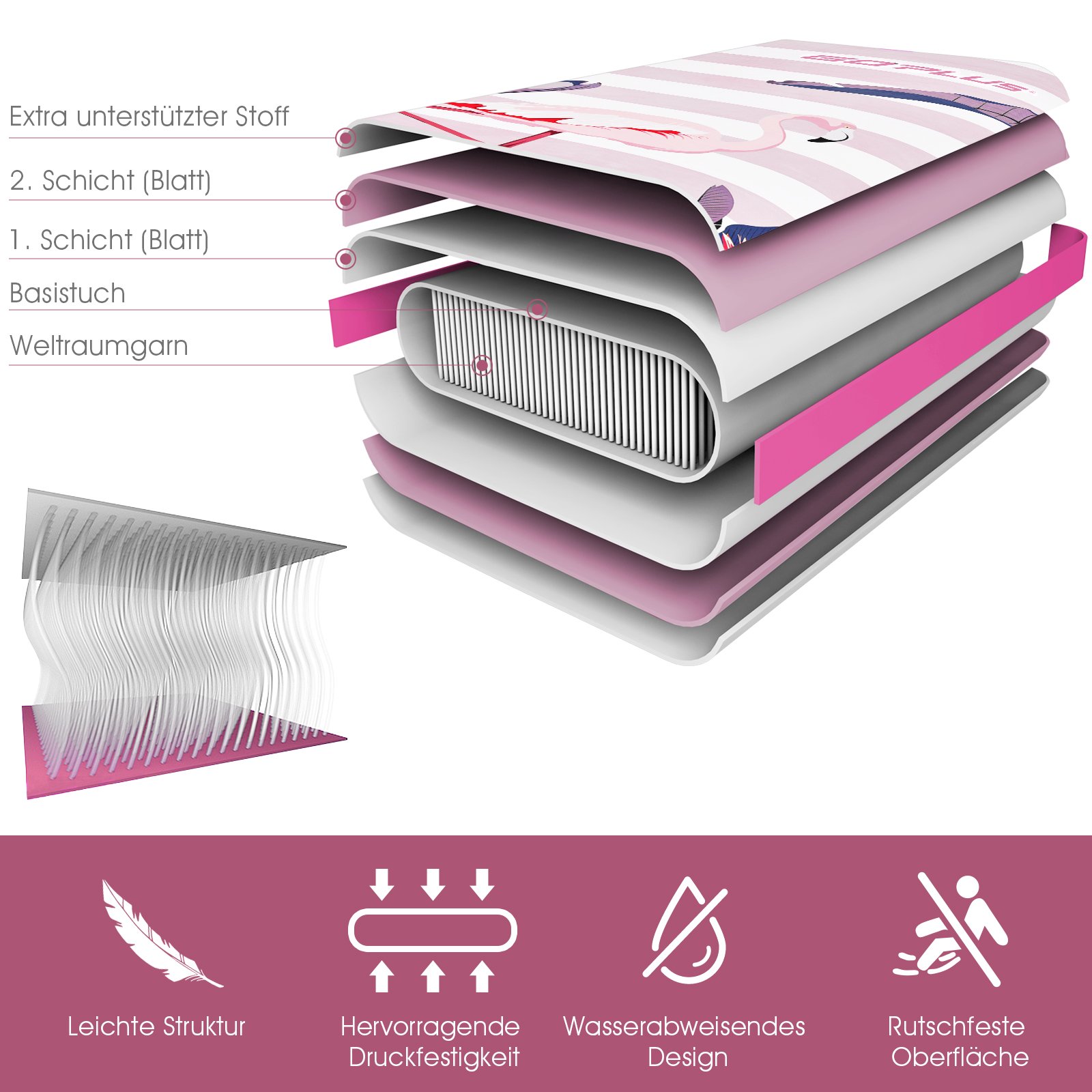 - Tvirtas ir ilgaamžis PVC pagrindas su specialios V formos siūlėmis.