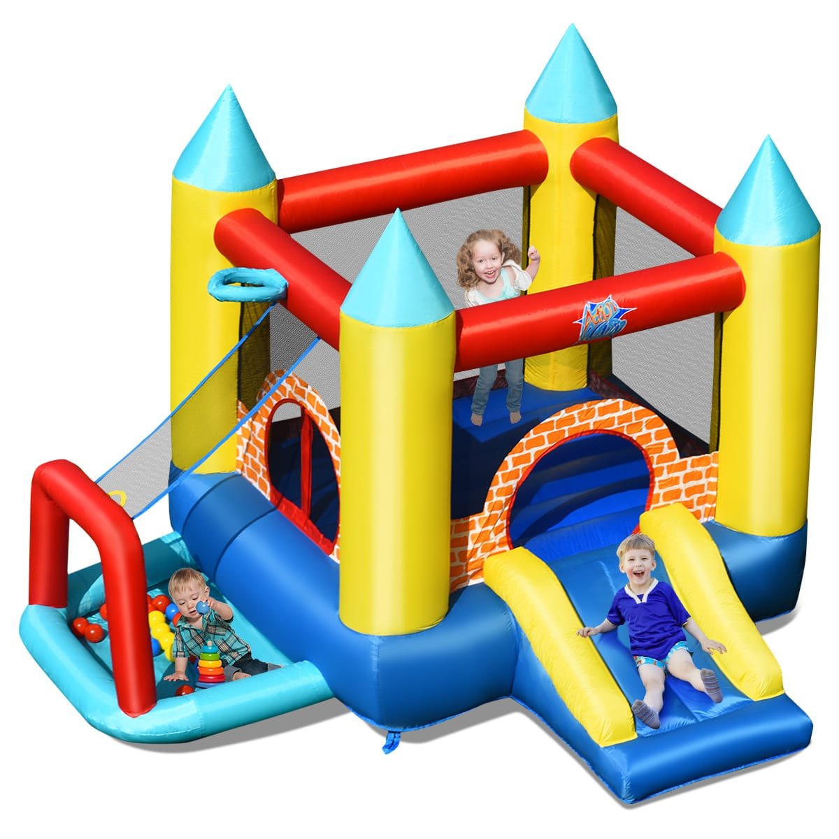 Sukurkite nepamirštamas pramogas savo vaikams su šia universalia pripučiama pilimi! Tai puiki vieta aktyviems žaidimams lauke, skatinanti vaikų fizinę veiklą ir ugdanti fantaziją. Pilis su čiuožykla ir krepšinio lenta suteiks daugybę džiaugsmo mažiesiems.