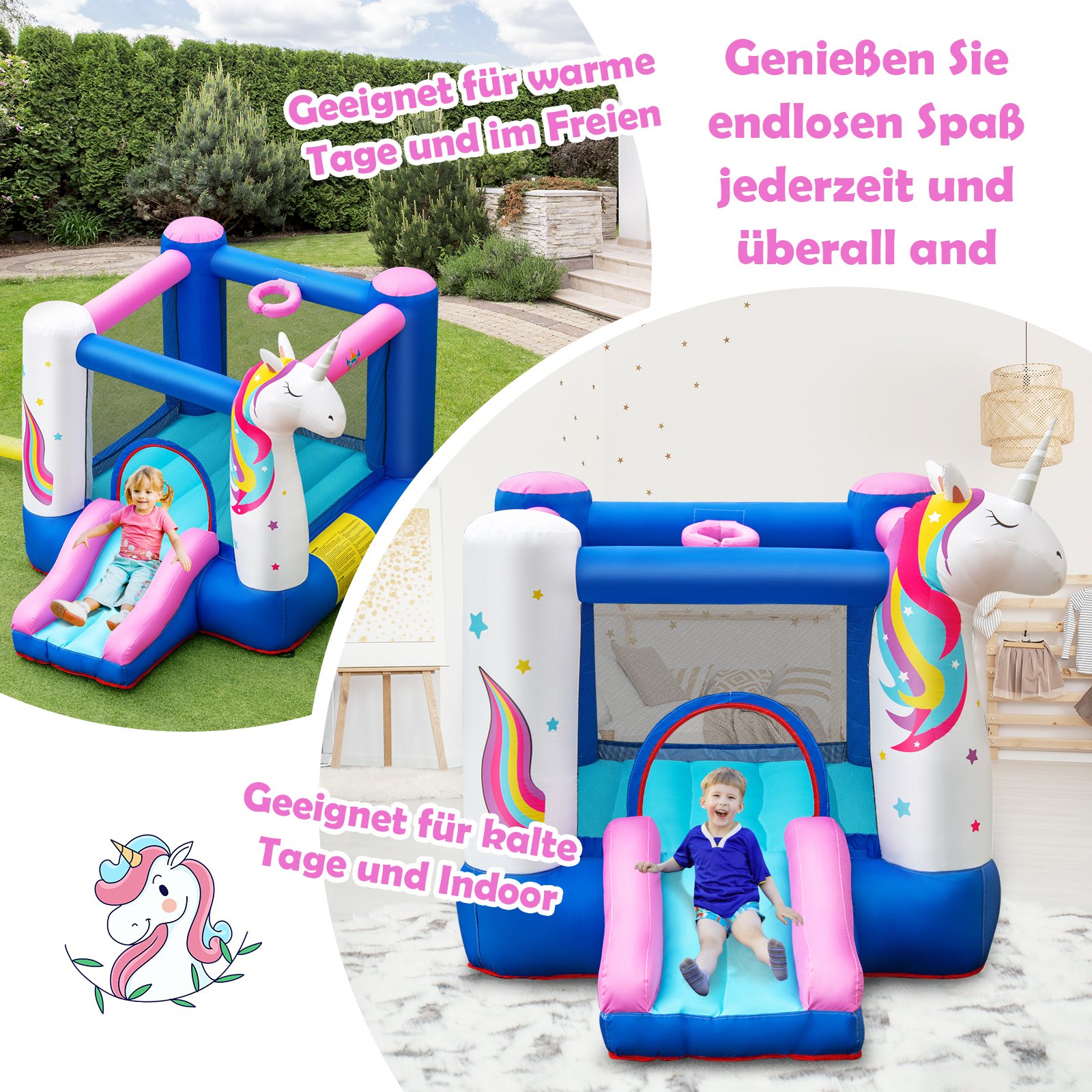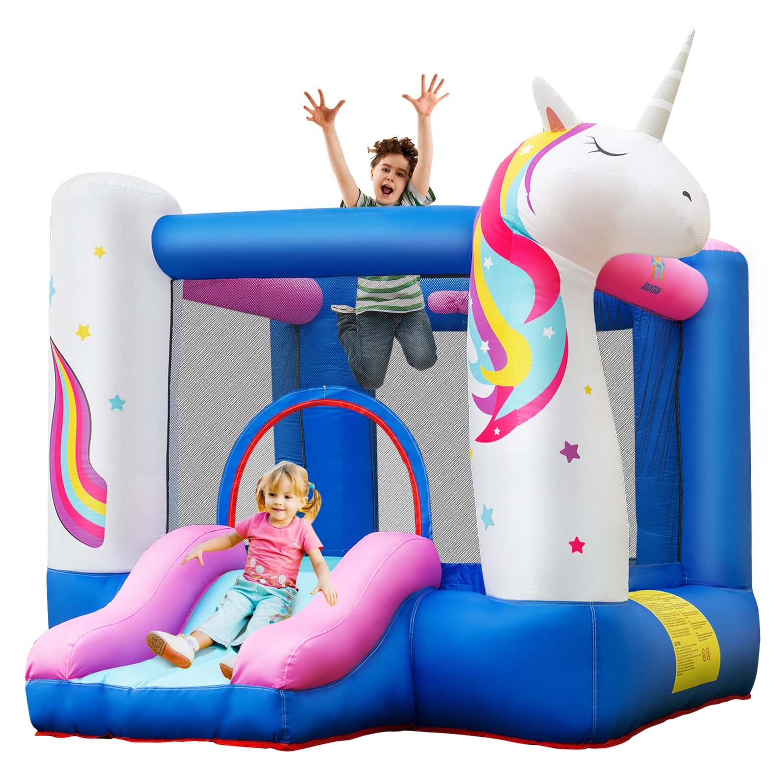 Atgaivinkite vaikų žaidimus su šia spalvinga pripučiama pilimi! Sukurta su smagia vienaragio tema, ji suteiks jūsų mažiesiems begalę džiaugsmo ir skatins aktyvumą. Puiki dovana, skatinanti judėjimą ir vaizduotę.