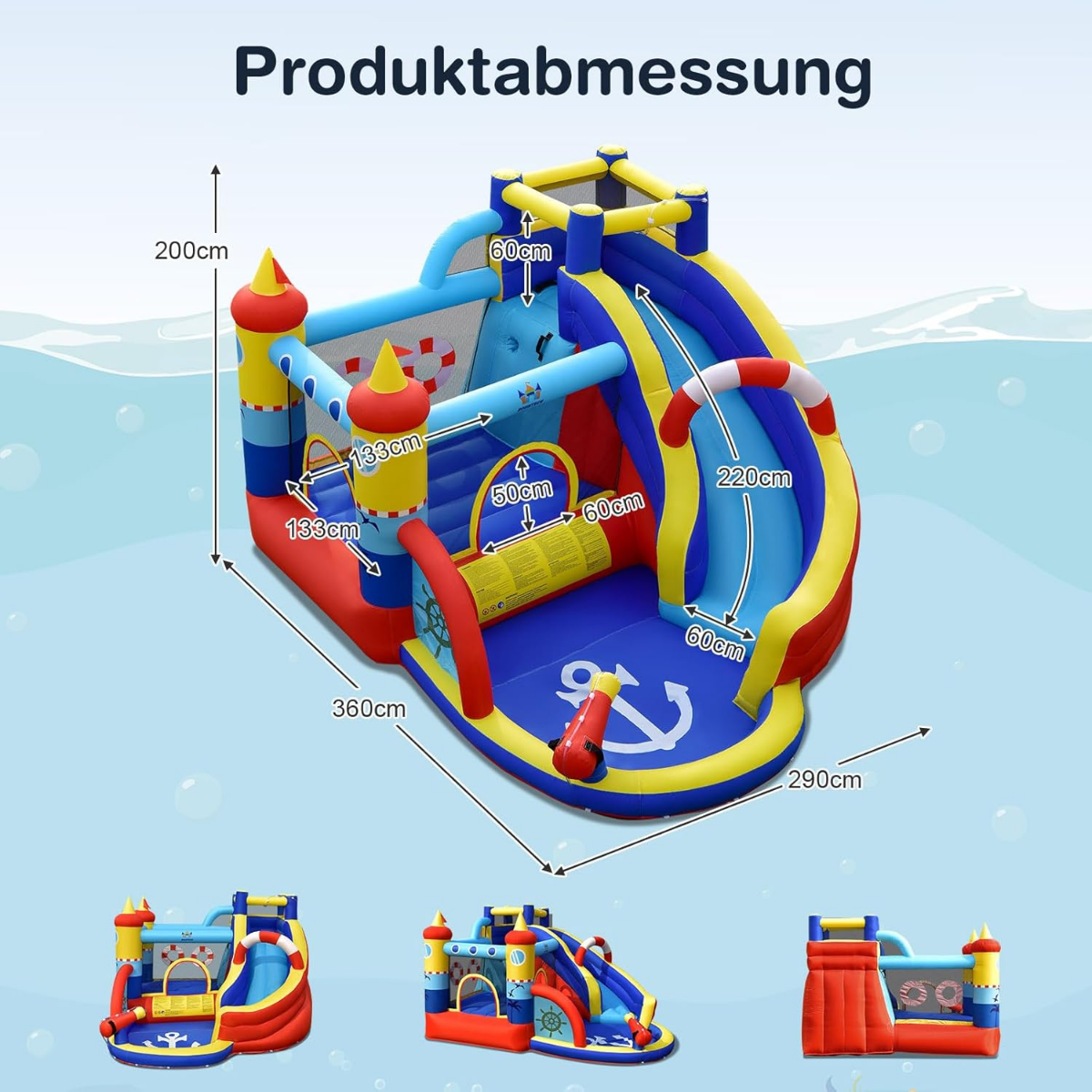 • Sujungia vandens čiuožyklą, pilį, baseinėlį ir laipiojimo sienelę.