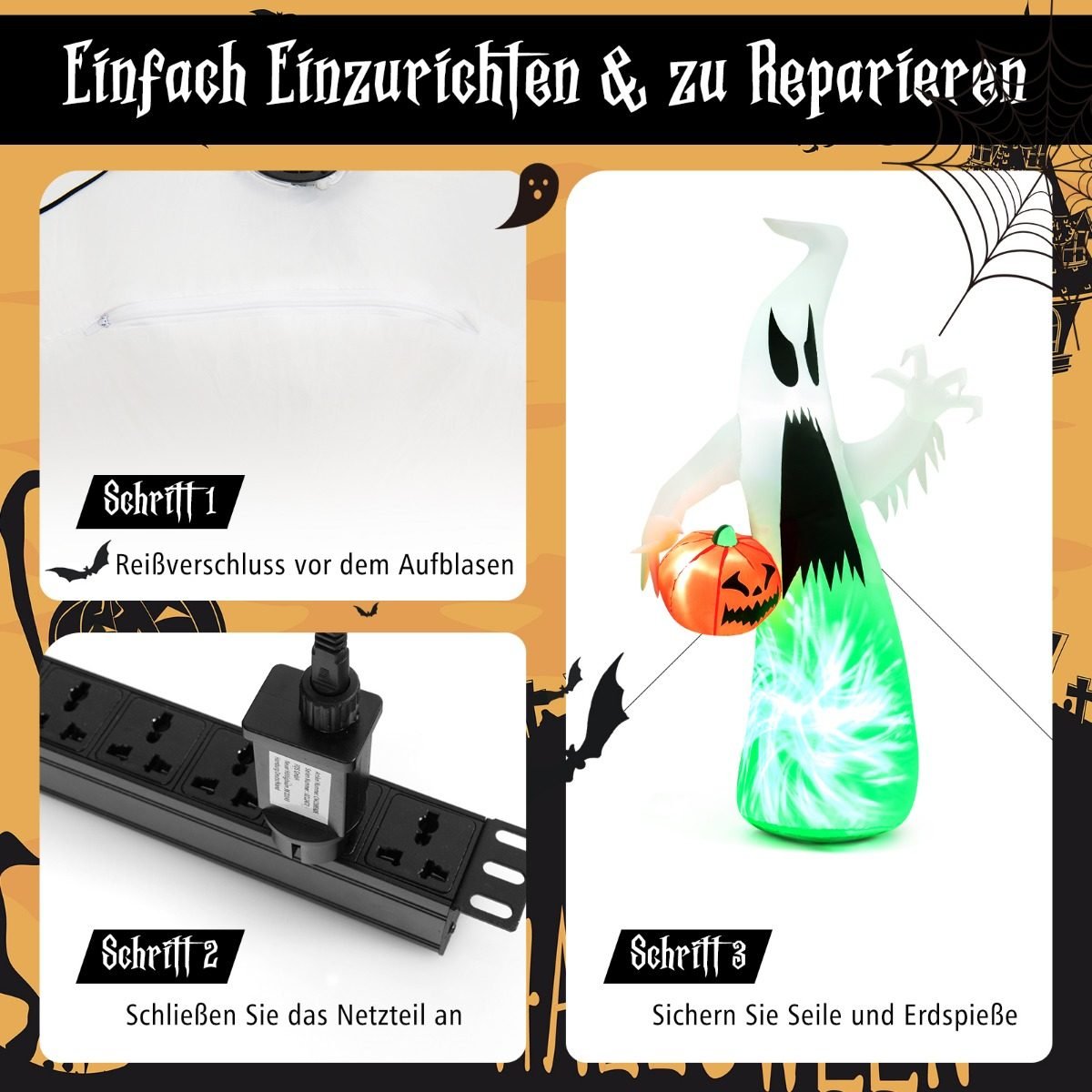 Artėjant Helovinui, sukurkite nepamirštamą atmosferą su šia pripučiama dvasios figūra! Šis baisiai atrodantis, bet draugiškas personažas su integruotu moliūgu taps jūsų sodo ar kiemo žvaigžde. Jo ryškus apšvietimas ir greitas pripūtimas užtikrins, kad jūsų šventė bus pastebėta.