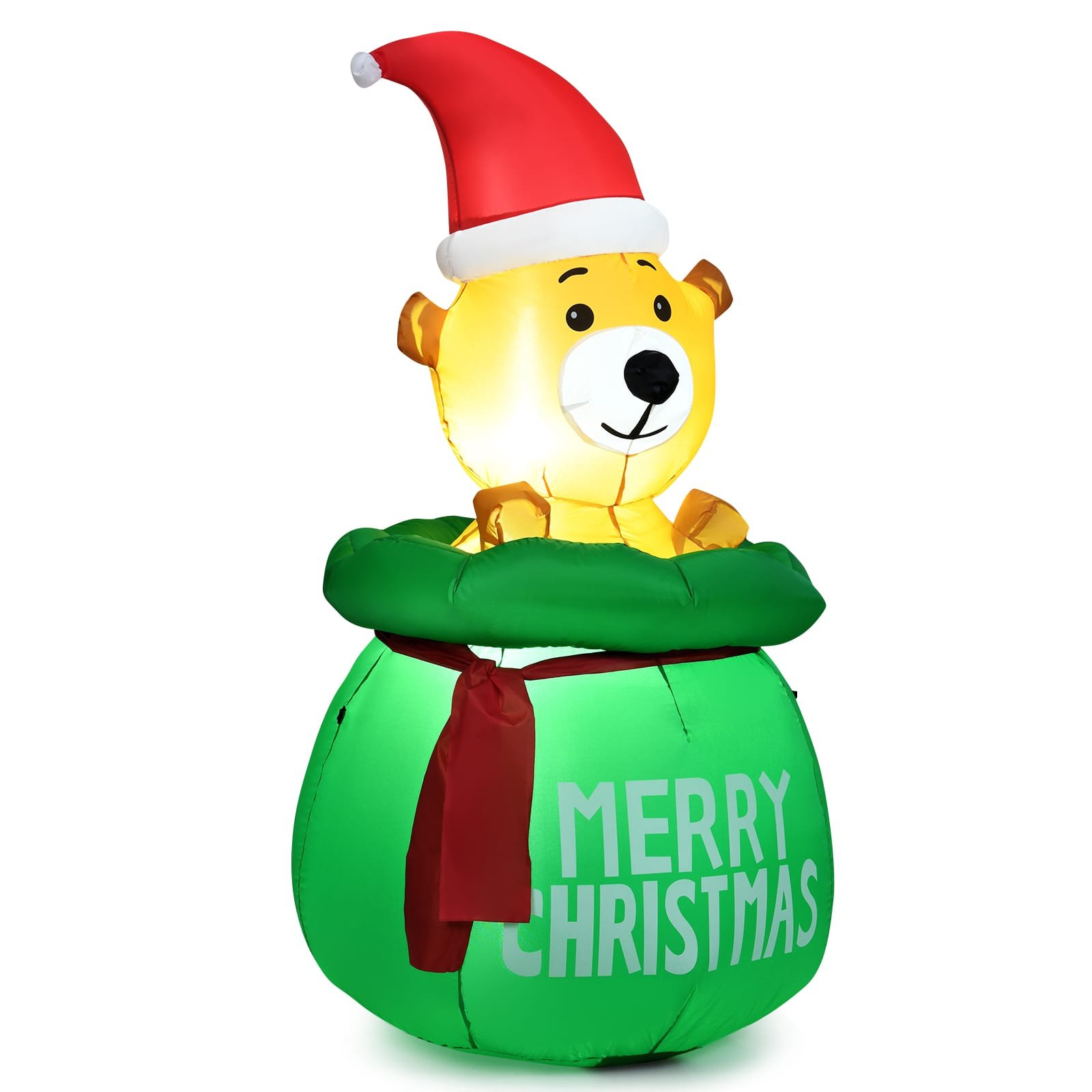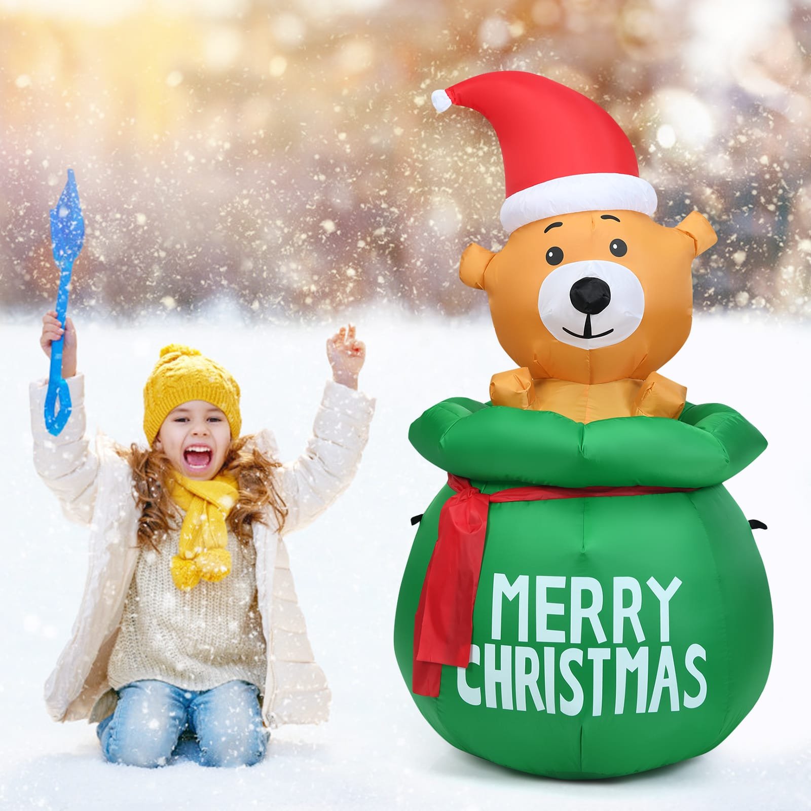 Sukurkite nepamirštamą šventinę atmosferą su šiuo žavingu pripučiamu Kalėdiniu meškinu! Jis taps centriniu jūsų namų ar kiemo akcentu, suteikdamas džiaugsmo ir šilumos per šventes.