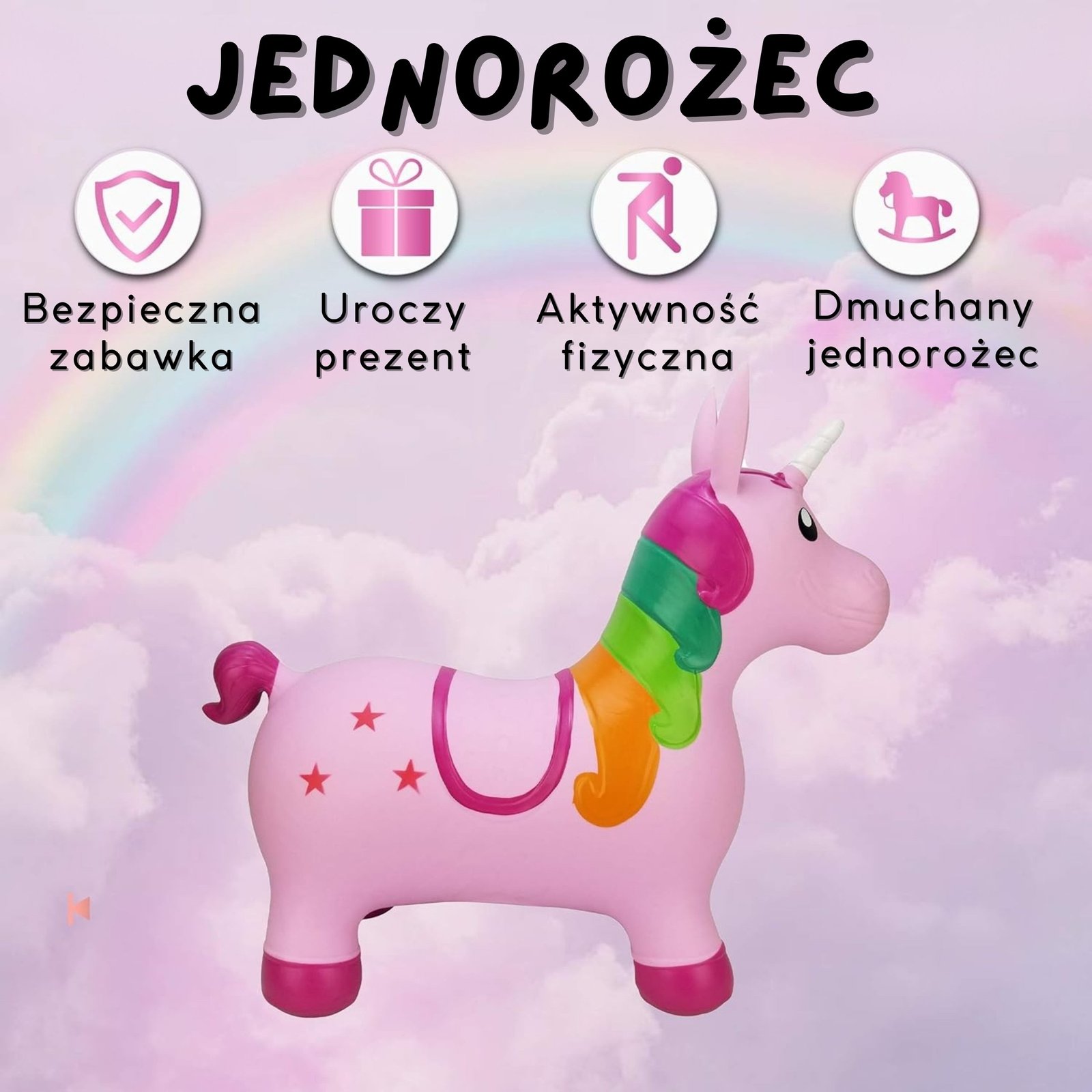 • 1x Pripučiamas vienaragis-šokliukas.