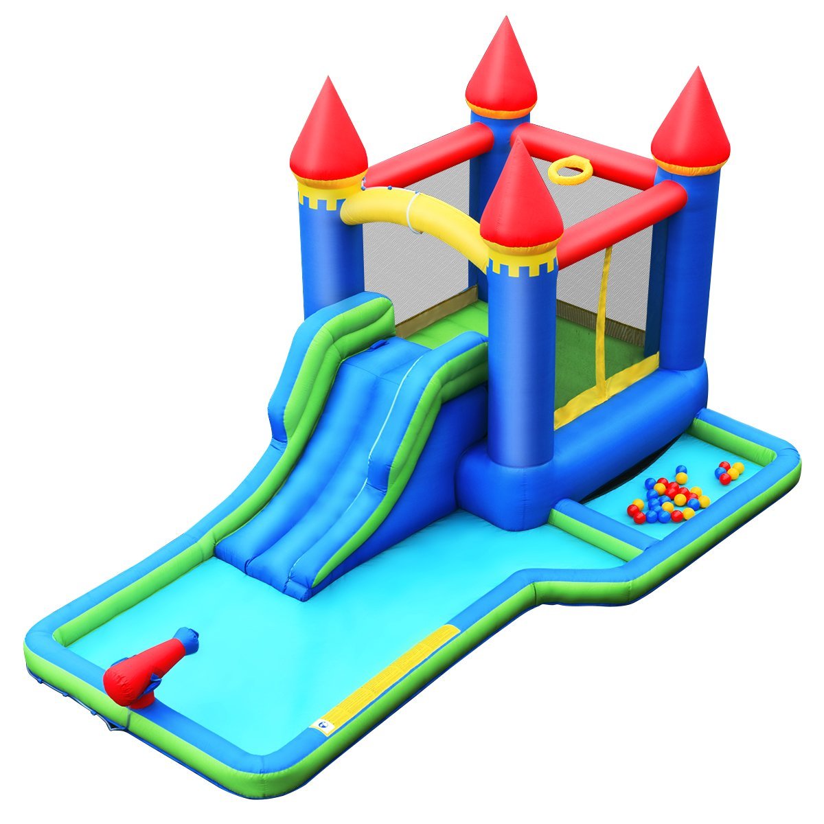 Pripučiamas vandens parkas su čiuožykla ir krepšinio lenta (Spalvotas)