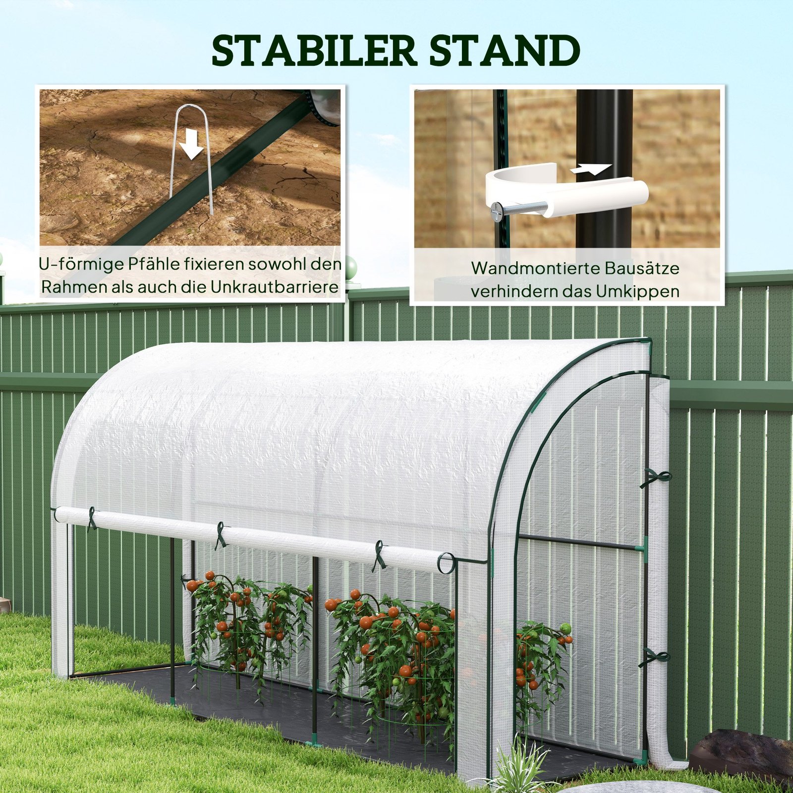 Šiltnamis yra profesionalus priedas kiekvienam sodui. Integruotas piktžolių barjeras apsaugo nuo nepageidaujamo augimo. Šis šiltnamis, turintis dvi duris ir atidaromą priekinę sienelę, leidžia lengvai prieiti prie augalų ir užtikrina pakankamą ventiliaciją, kad augalai galėtų optimaliai augti kontroliuojamomis sąlygomis. Šis šiltnamis yra praktiškas, vietą taupantis sprendimas sodininkams, norintiems stilingai ir patogiai auginti augalus.