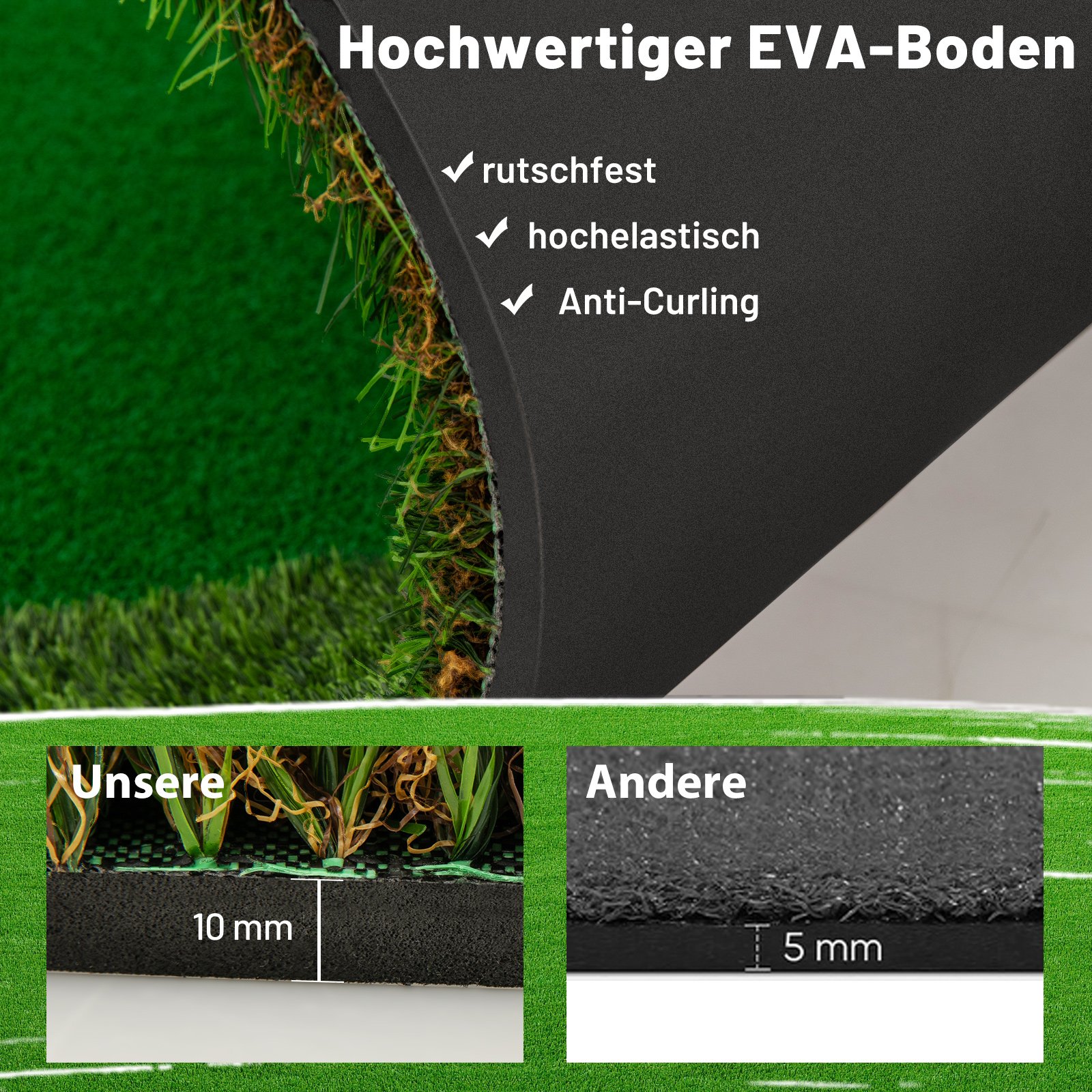 - Tvirtas, neslystantis ir itin elastingas EVA pagrindas stabiliai laiko aikštelę vietoje.