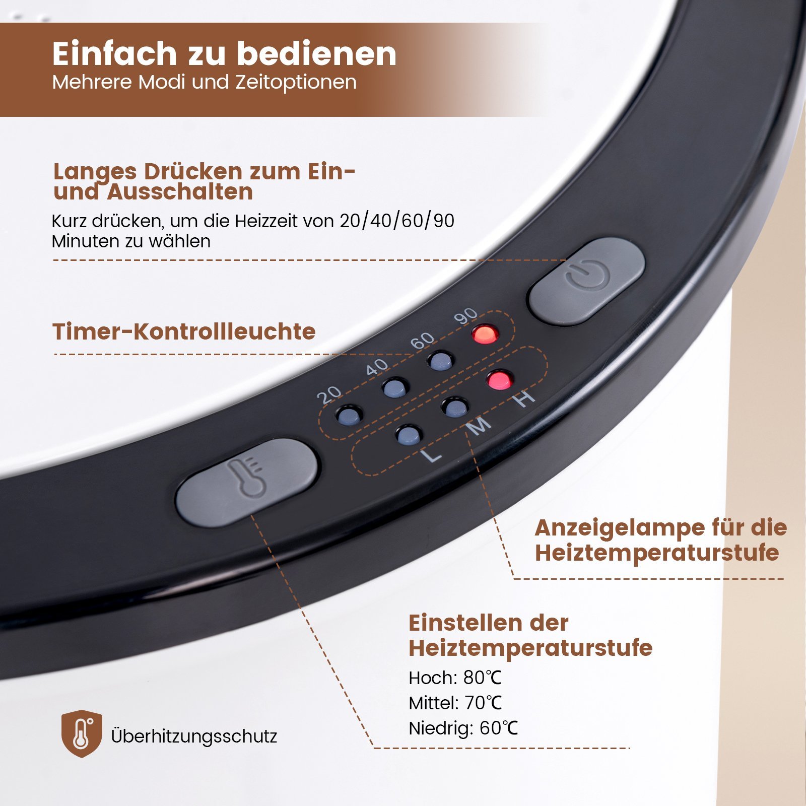 • Lengvas valdymas su laikmačio funkcija ir apsauga nuo perkaitimo.