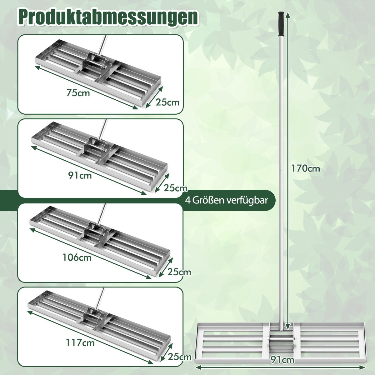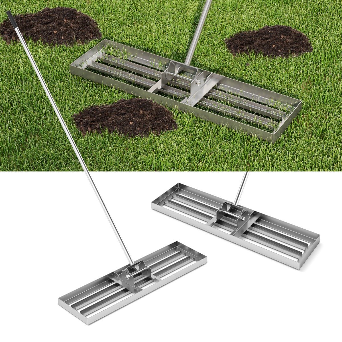 Profesionalus plokščias grėblys – nepakeičiamas įrankis tvarkingai ir lygiai Jūsų vejai palaikyti. Su juo lengvai išlyginsite dirvožemį, pašalinsite akmenukus ir suskaldysite grumstus, užtikrindami nepriekaištingą Jūsų sodo, kiemo ar golfo aikštyno vejos išvaizdą.