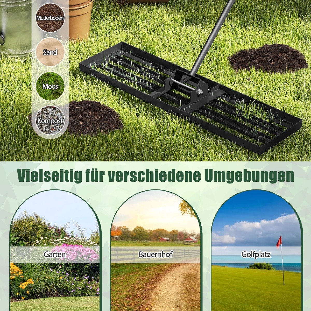 UAB „[Jūsų įmonės pavadinimas]“ pristato profesionalų vejos lyginimo grėblį, sukurtą palaikyti nepriekaištingą Jūsų vejos išvaizdą. Šis tvirtas ir patogus įrankis padės lengvai išlyginti dirvožemį, pašalinti akmenis ir suformuoti tobulą vejos paviršių. Ergonomiška rankena ir plati darbinė dalis užtikrina greitą ir lengvą darbą.