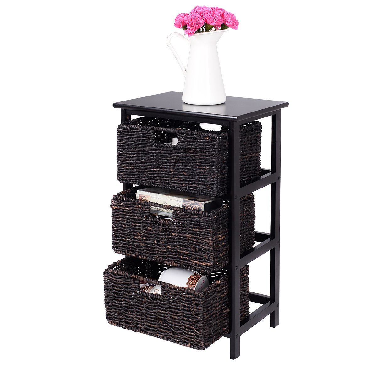 Pušinė krepšelių komoda (Juoda)