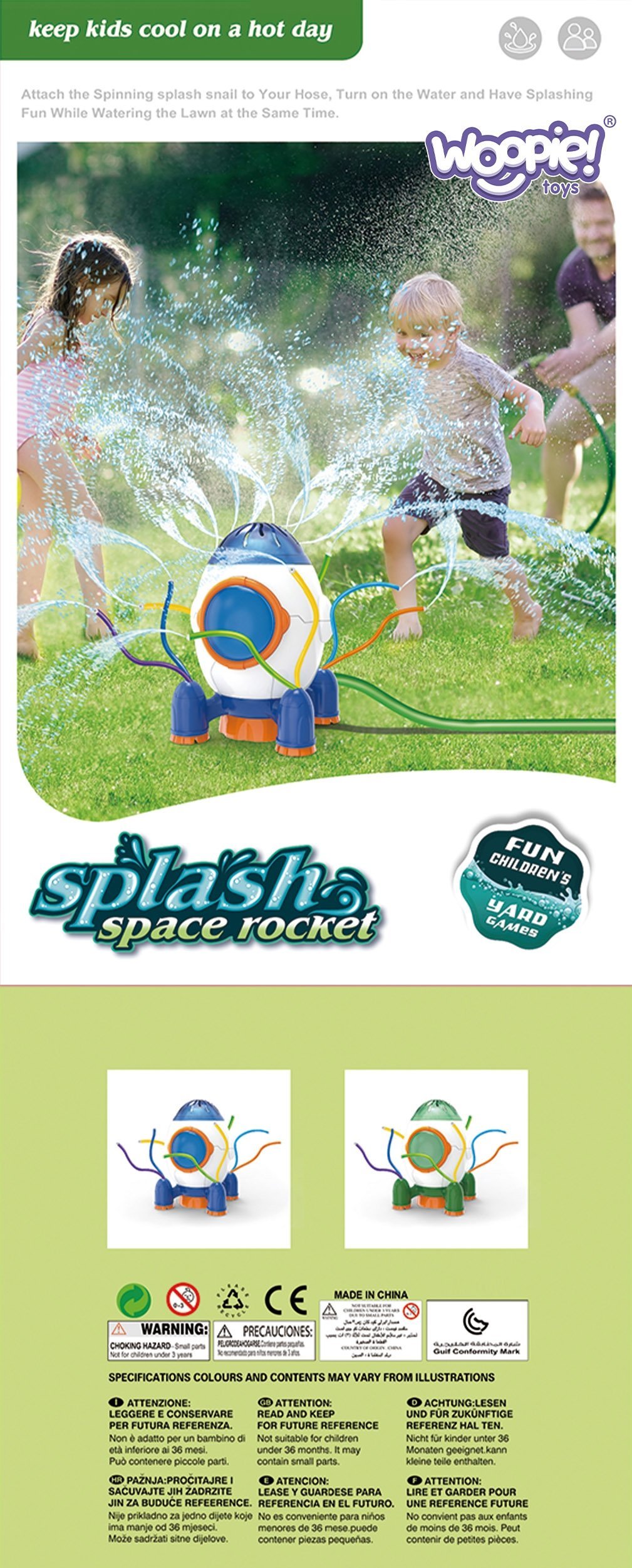 Šis raketos formos purkštuvas 2in1 vienu metu veikia ir kaip žaislas vaikams, ir kaip sodo purkštuvas. Iš lanksčių, spalvotų vamzdelių vanduo trykšta įvairiomis kryptimis, sukuriant džiaugsmingą fontano efektą. Žaislas pagamintas iš kokybiškų medžiagų, užtikrinančių ilgaamžiškumą net ir intensyvių žaidimų metu. Dėl lengvos konstrukcijos ir lygių kraštų purkštuvas yra saugus vaikams liesti ir naudoti.