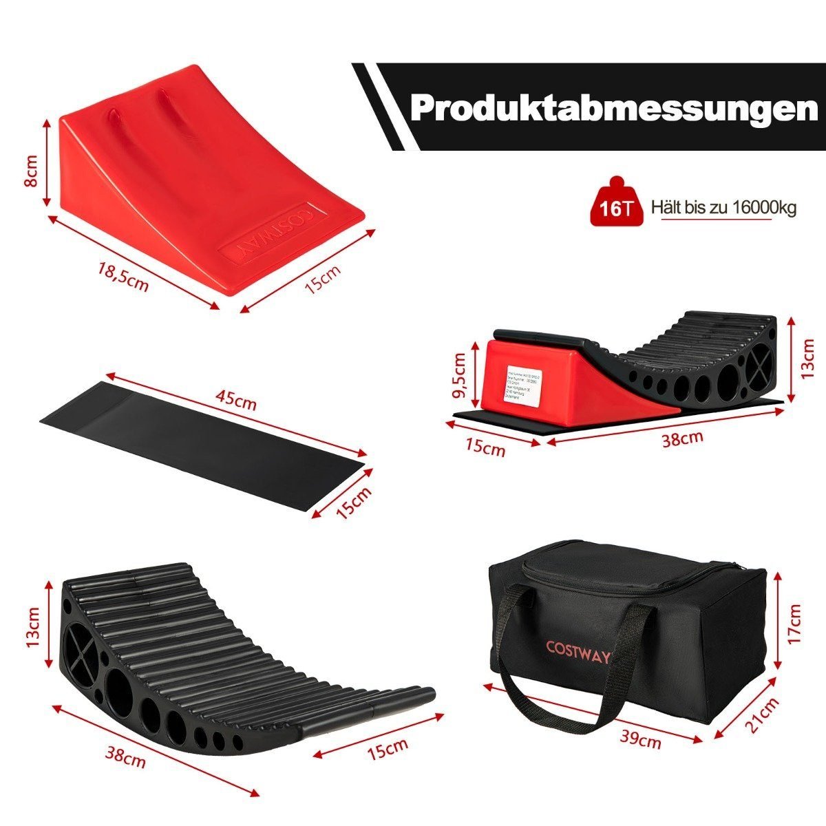 - Rampų matmenys: 38 x 15 x 13 cm (Ilgis x Plotis x Aukštis)